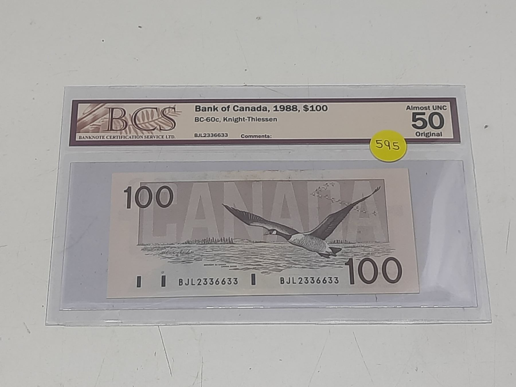 BCS - Bank of Canada, 1988, $100 BC-60c, Knight-Thiessen, Almost UNC 50 Original - BJL2336633.
