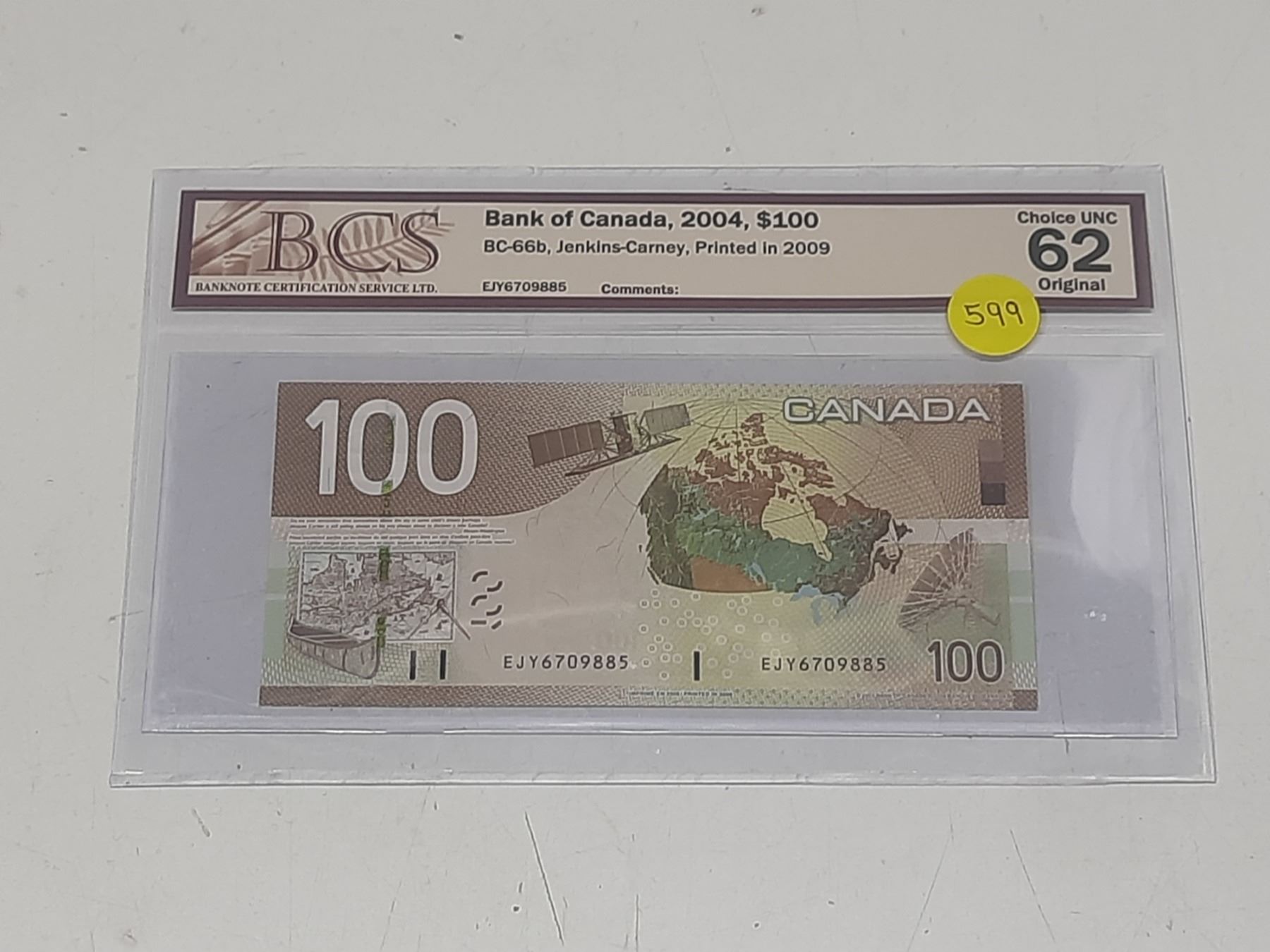 BCS - Bank of Canada, 2004, $100 BC-66b, Jenkins-Carney, Printed in 2009, Choice UNC 62 Original - E