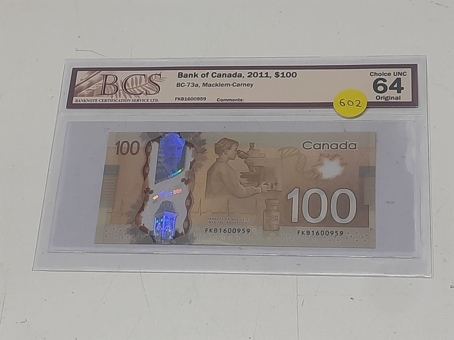 BCS - Bank of Canada, 2011, $100 BC-73a, Macklem-Carney, Choice UNC 64 Original - FKB1600959.