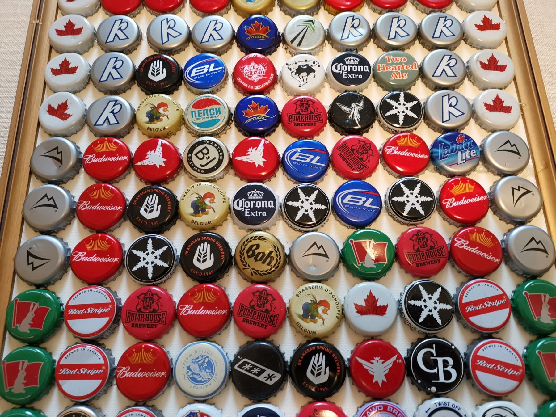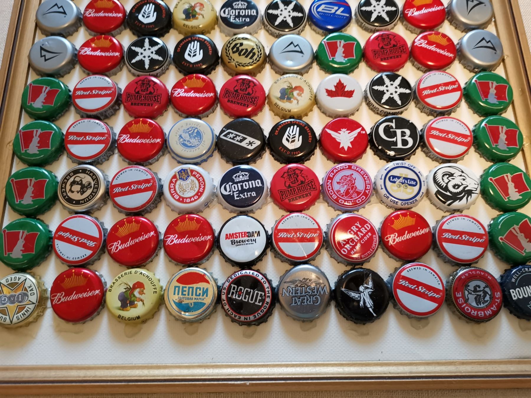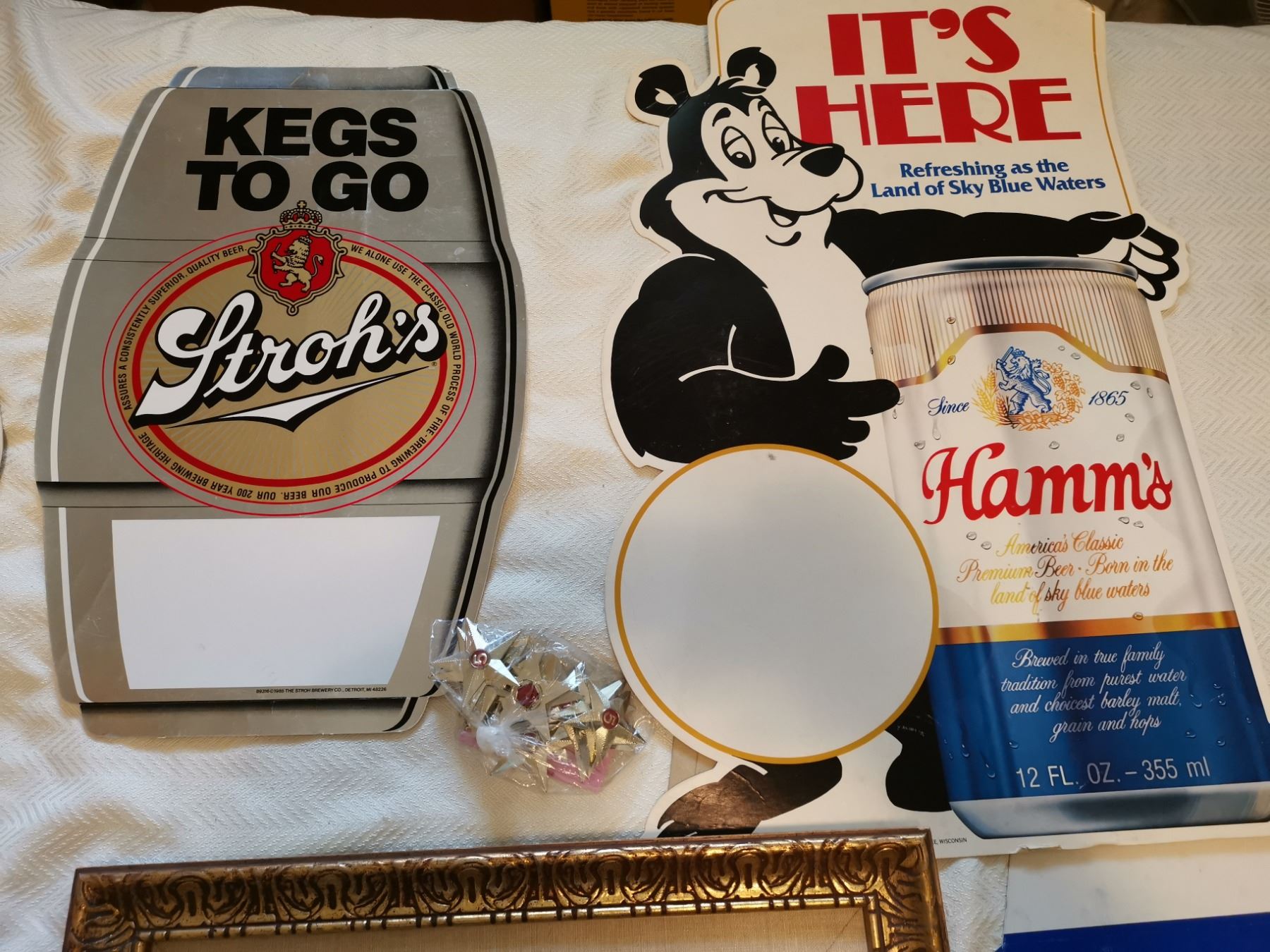 BEER LOT, 5 POSTERS & FRAMED CAPS 18" X 22"