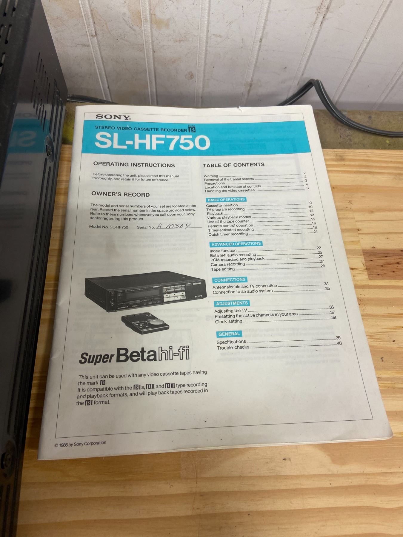 BETA MAX RECORDER C/W 2 WIRELESS REMOTES MANUAL-SONY