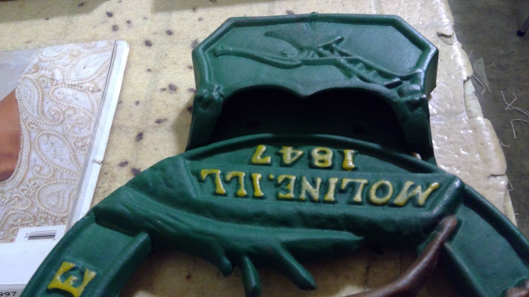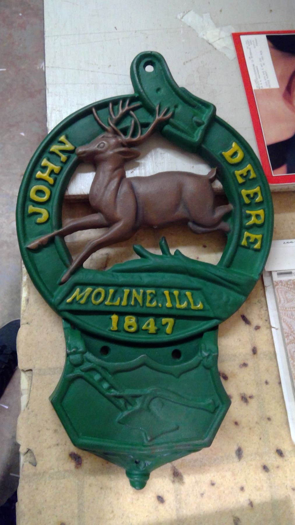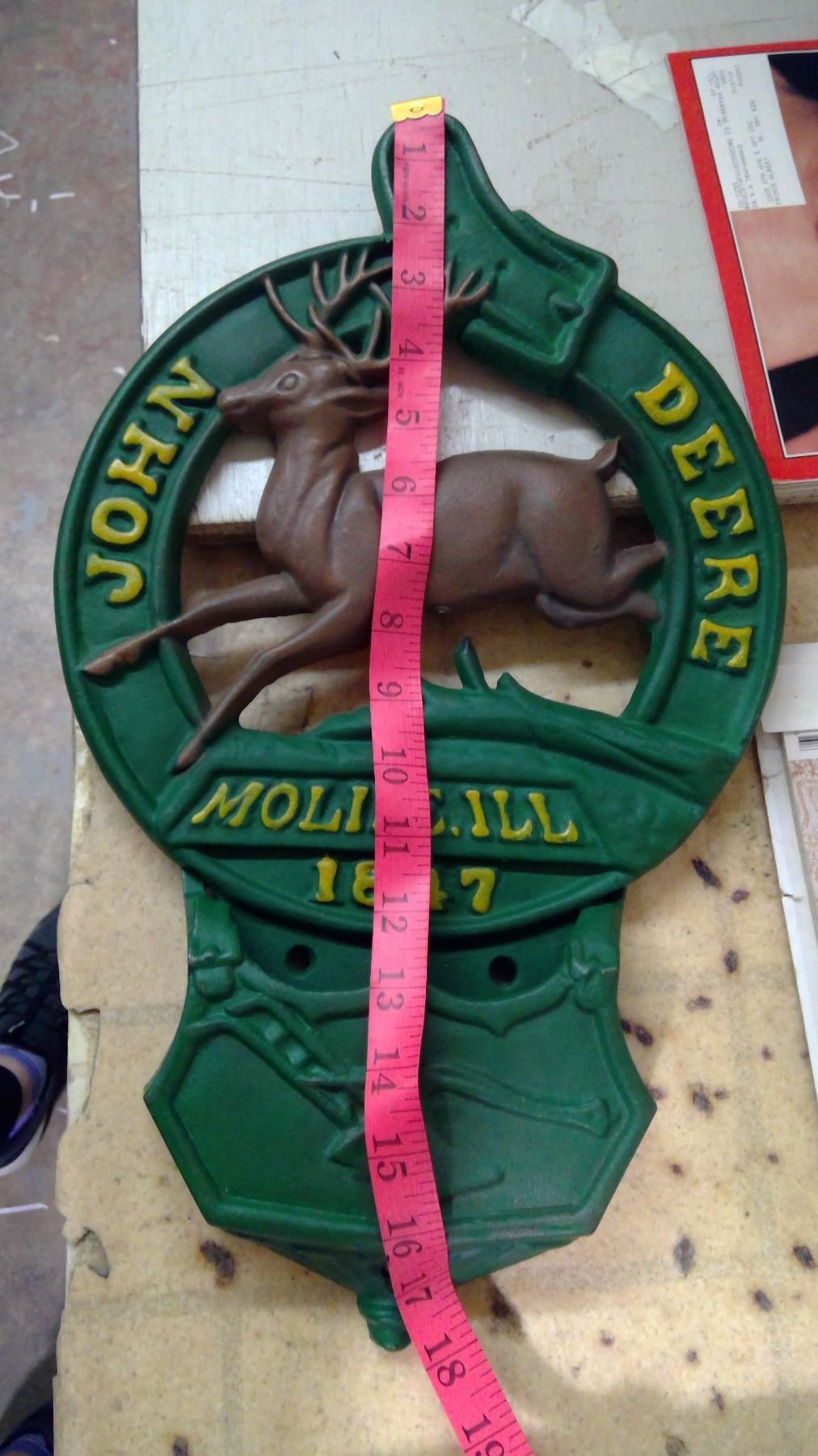 BIG GREEN CAST IRON JOHN DEERE WITH BROWN DEER LETTER HOLDER 17"H X 10"W