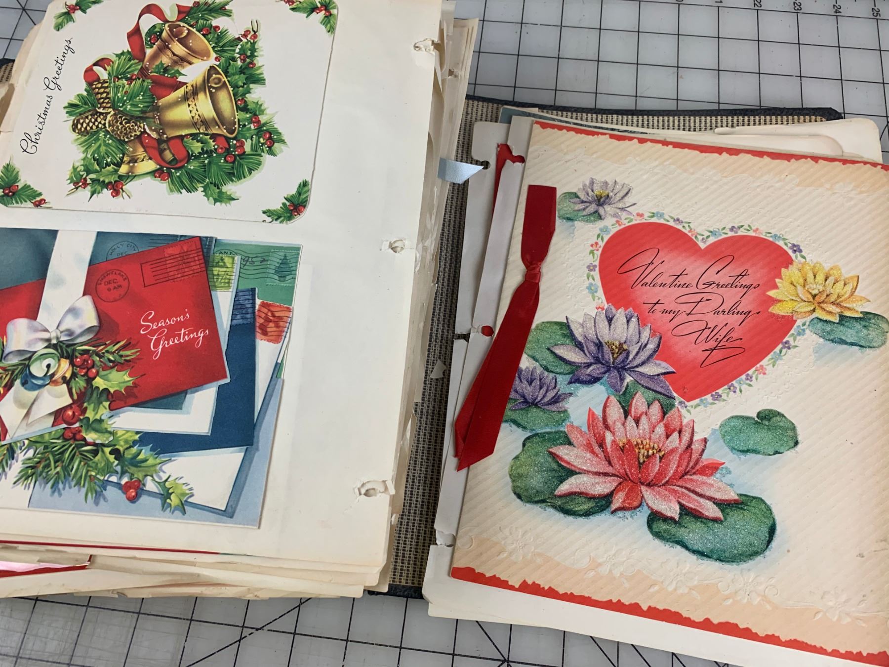 BINDER PACKED WITH VALENTINES CHRISTMAS GREETING CARDS AND MORE