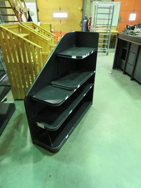 BLACK LAMINATE SHELVING UNIT 4 TIERS, LEFT SIDE, 4X4X14" ON WHEELS