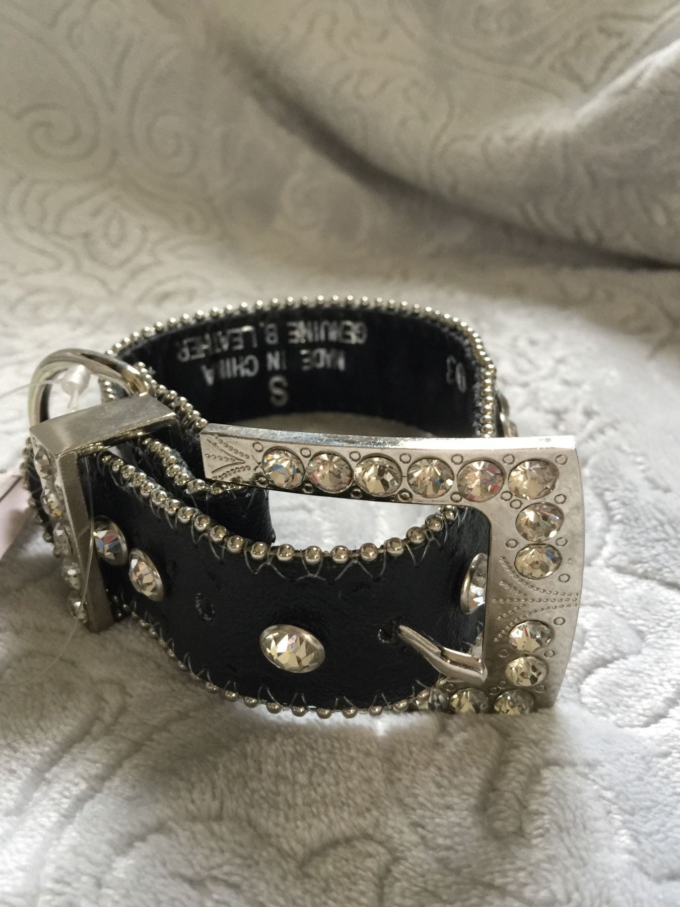 BLACK LEATHER/ SIZE SMALL 12 "/BLING ACCENTS