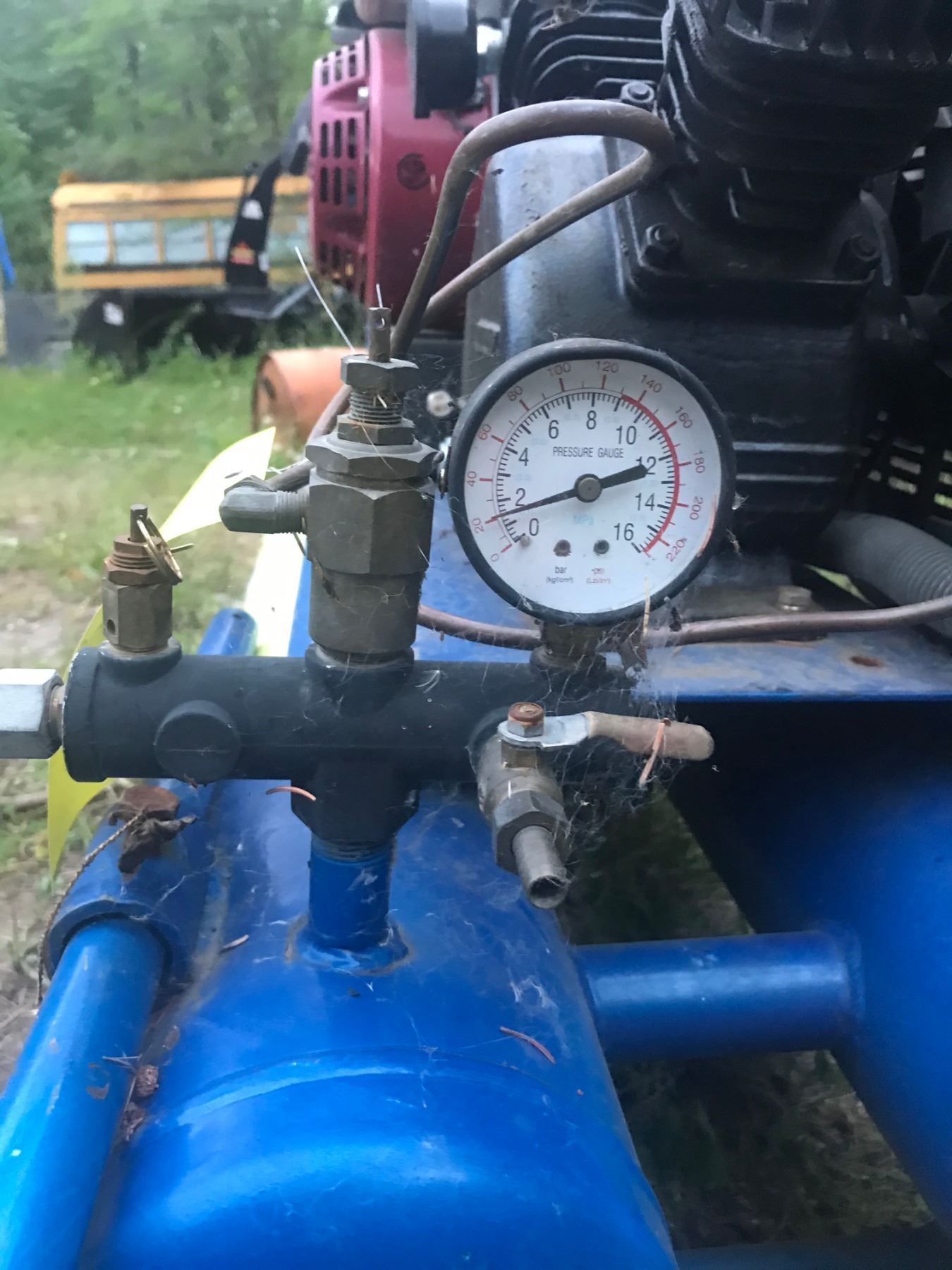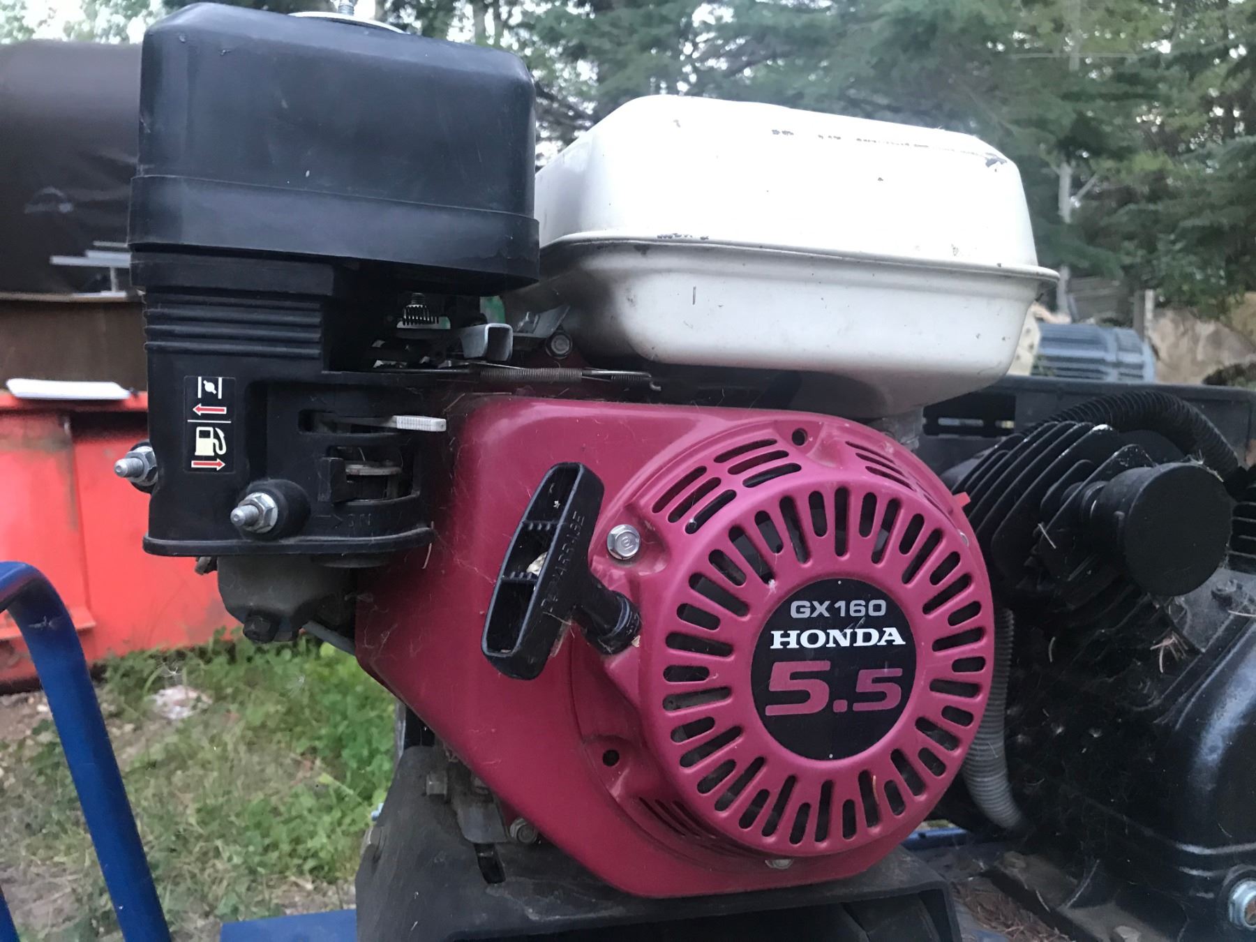 Compressor has low hours. The heads were damaged on old pump. Honda GX 160 Engine.