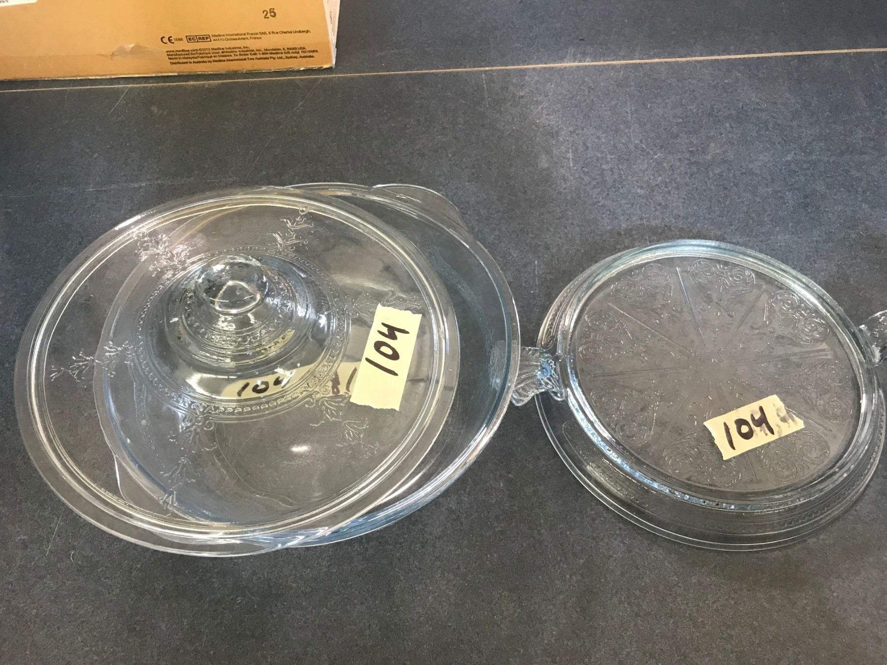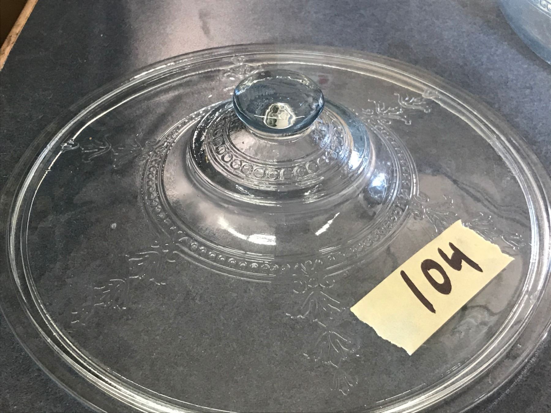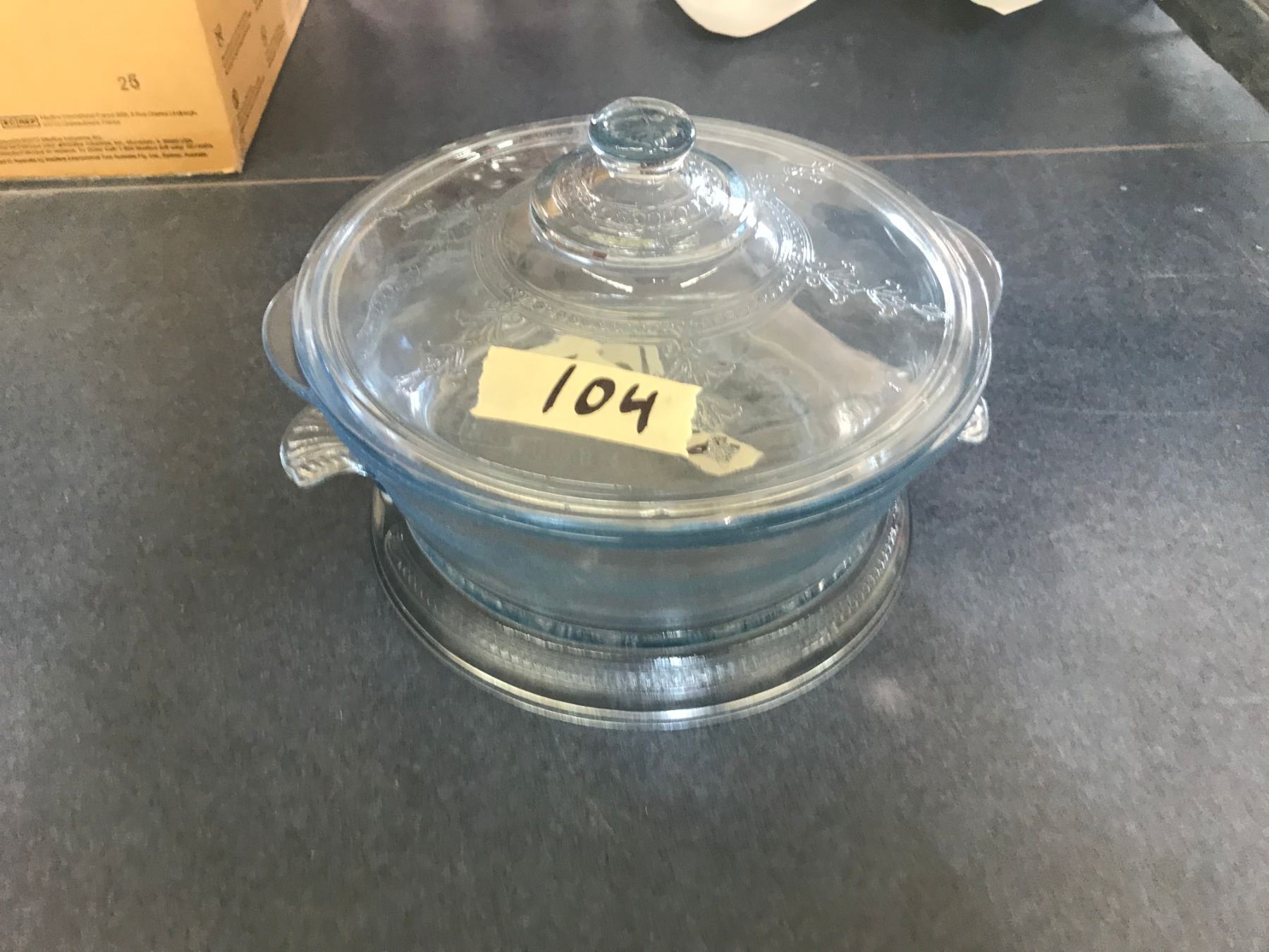 BLUE DEPRESSION COVERED FIRE KING CASSAROLE DISH + LID + BASE