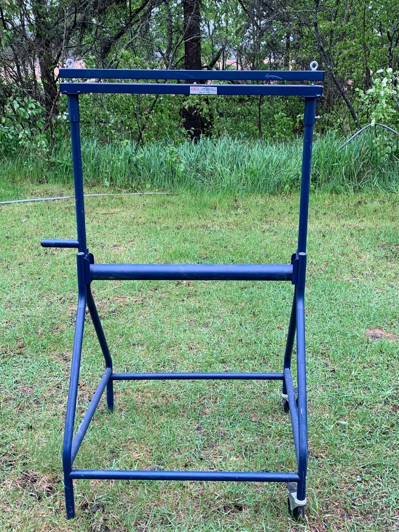 BLUE METAL ULINE ROLL DISPENSER/ ON WHEELS FOR EASY MOVING/ LIKE NEW NEVER USED!