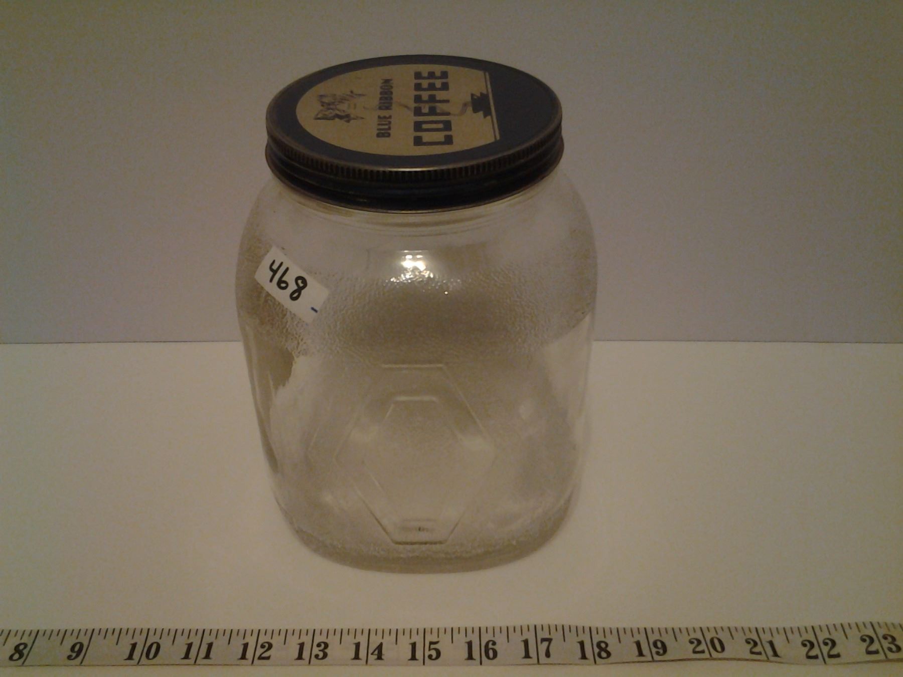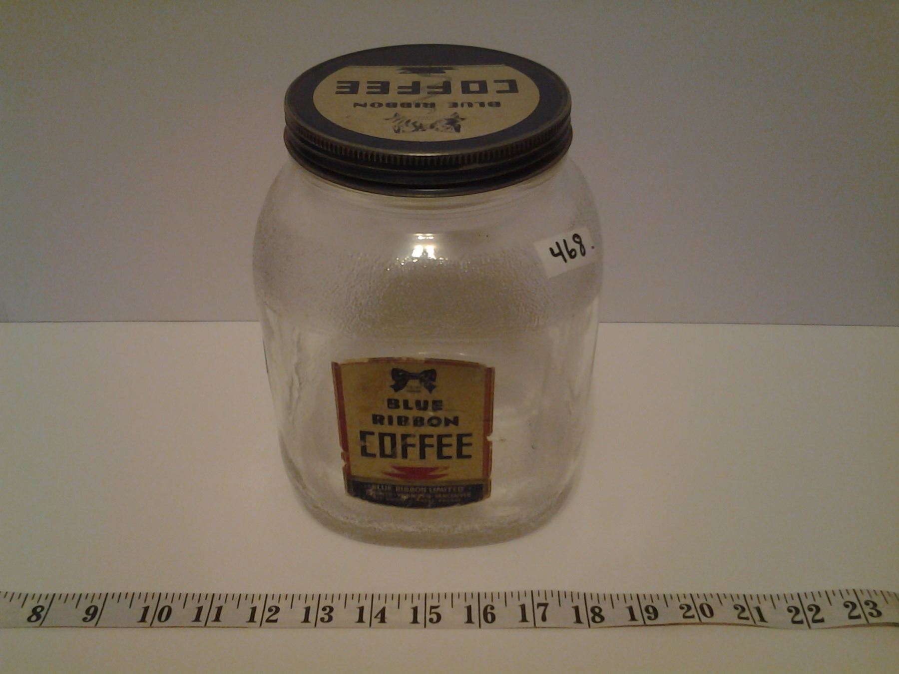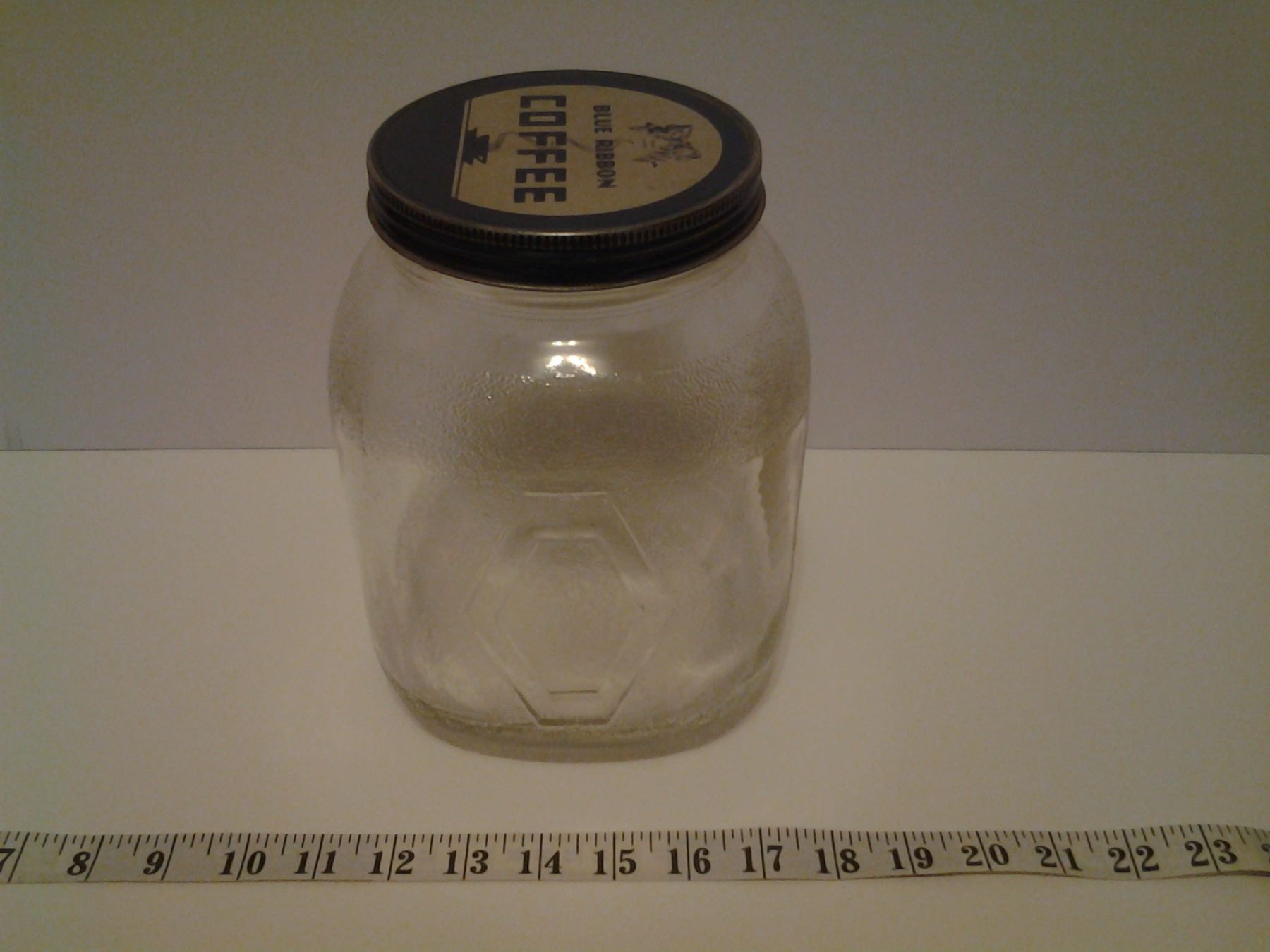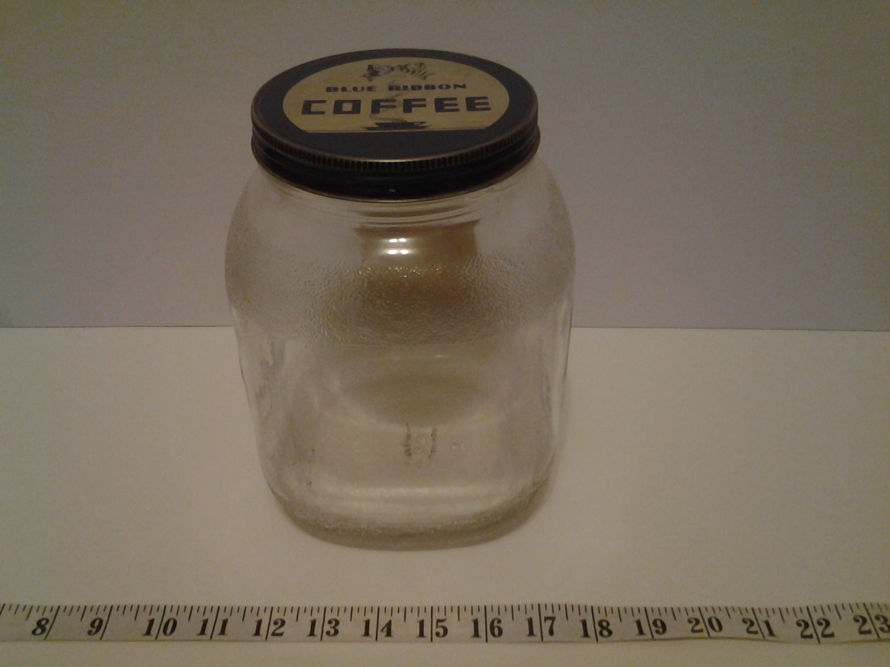 Blue Ribbon Coffee Jar from 1930's - 8.5" Tall