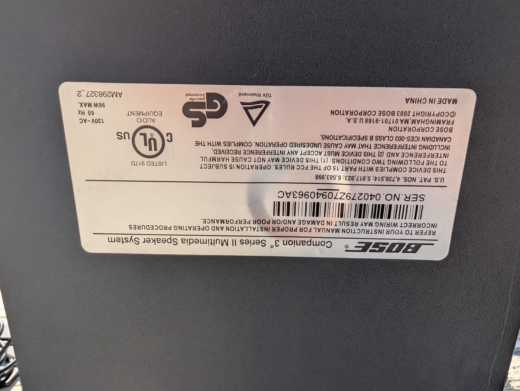 BOSE 3 Companion Speaker Set Ser. No. 040279Z70940963AC