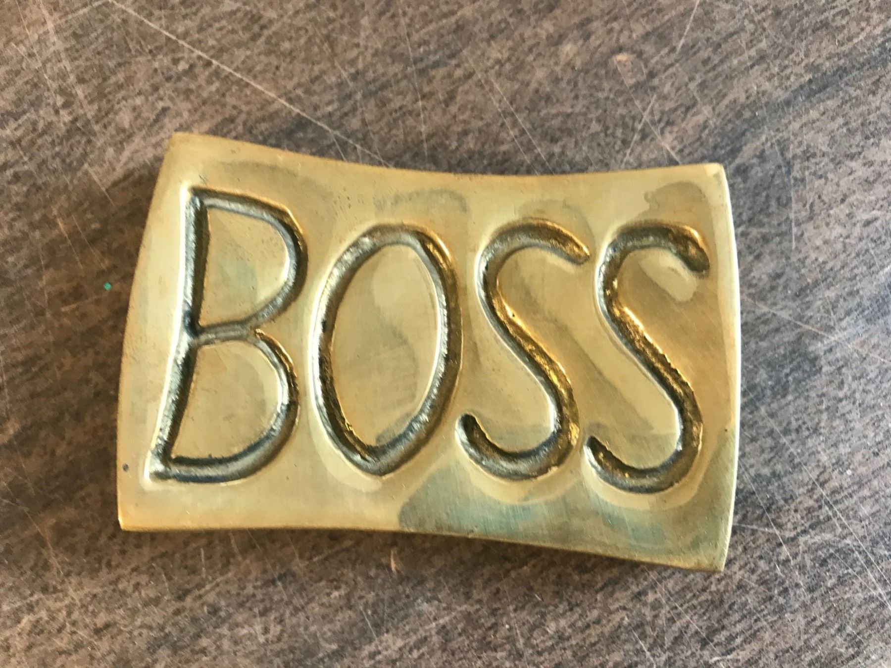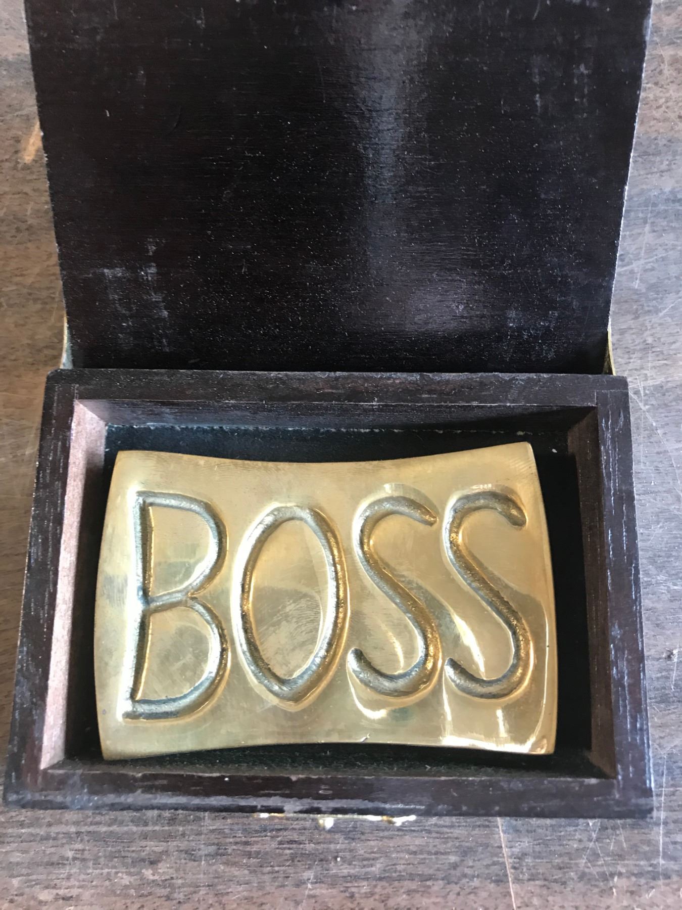 "BOSS" BRASS PAPERWEIGHT IN BOX