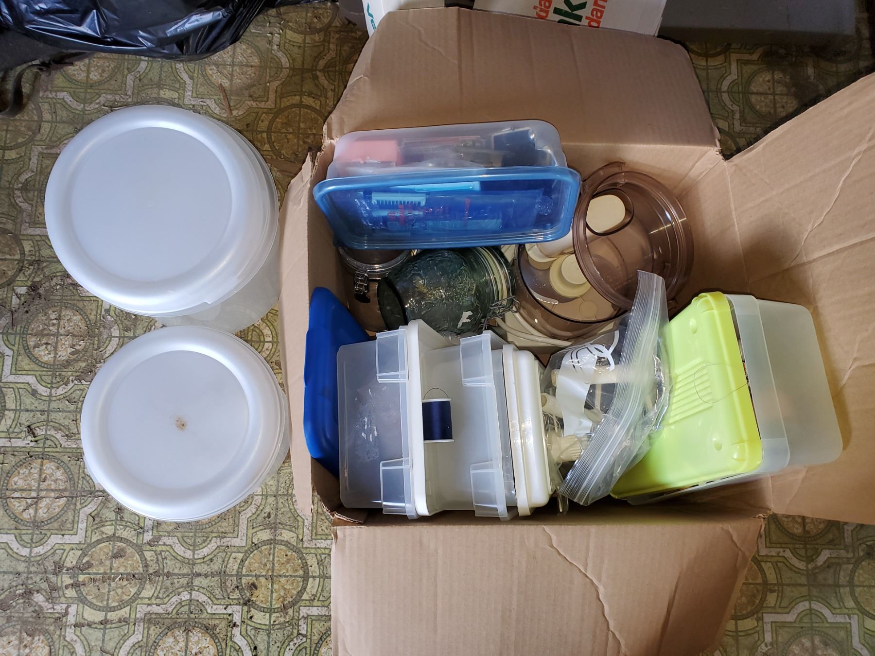 BOX FULL OF CONTAINERS & JARS