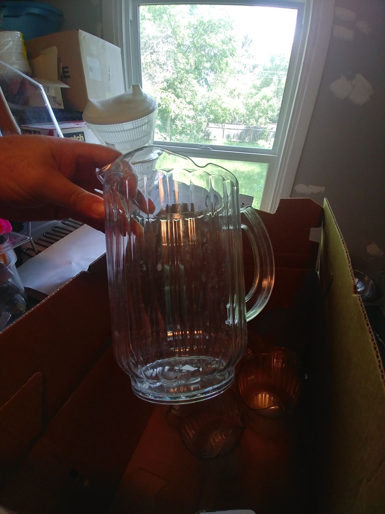 BOX OF ? CAMBRO WATER PITCHERS
