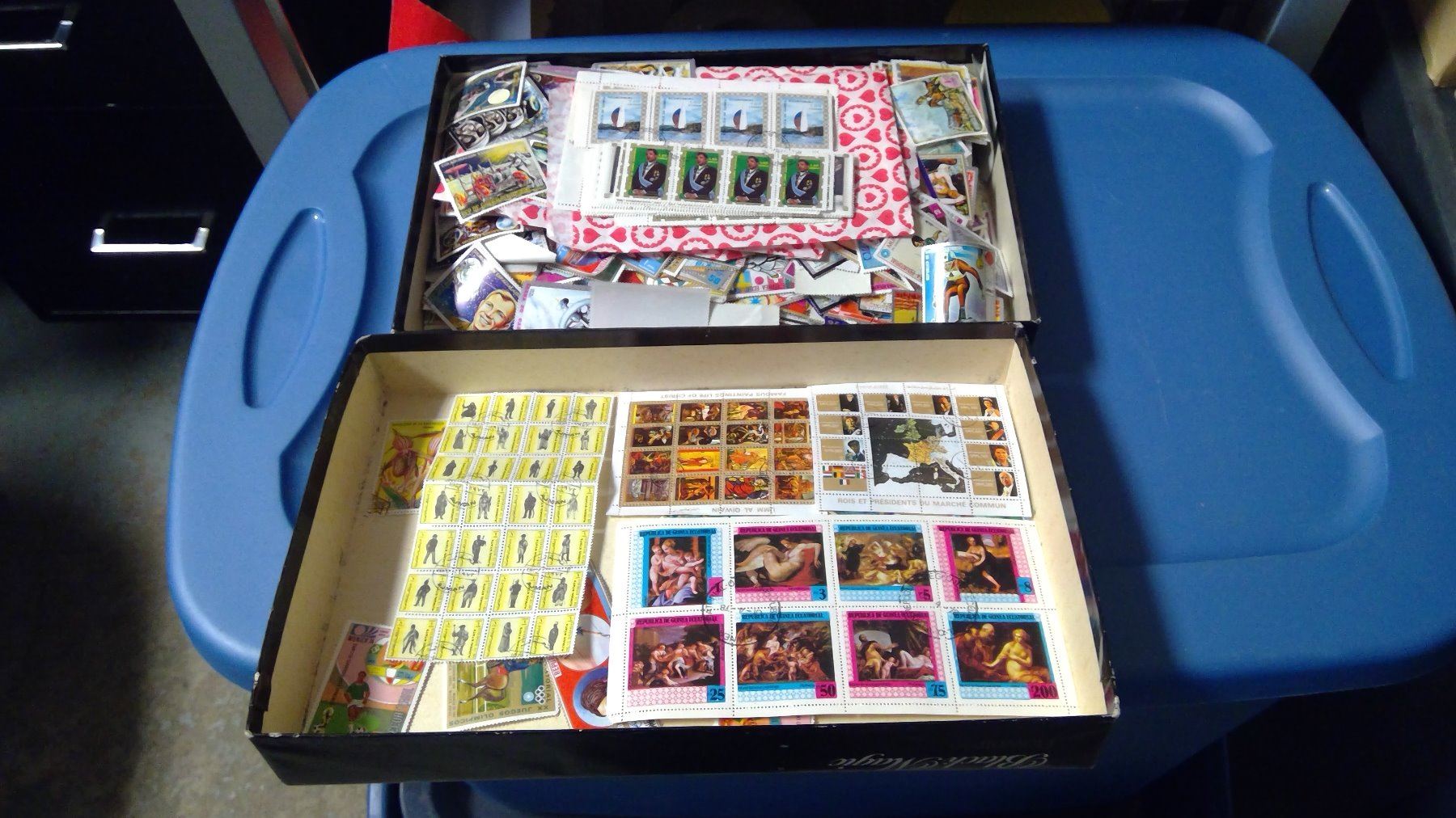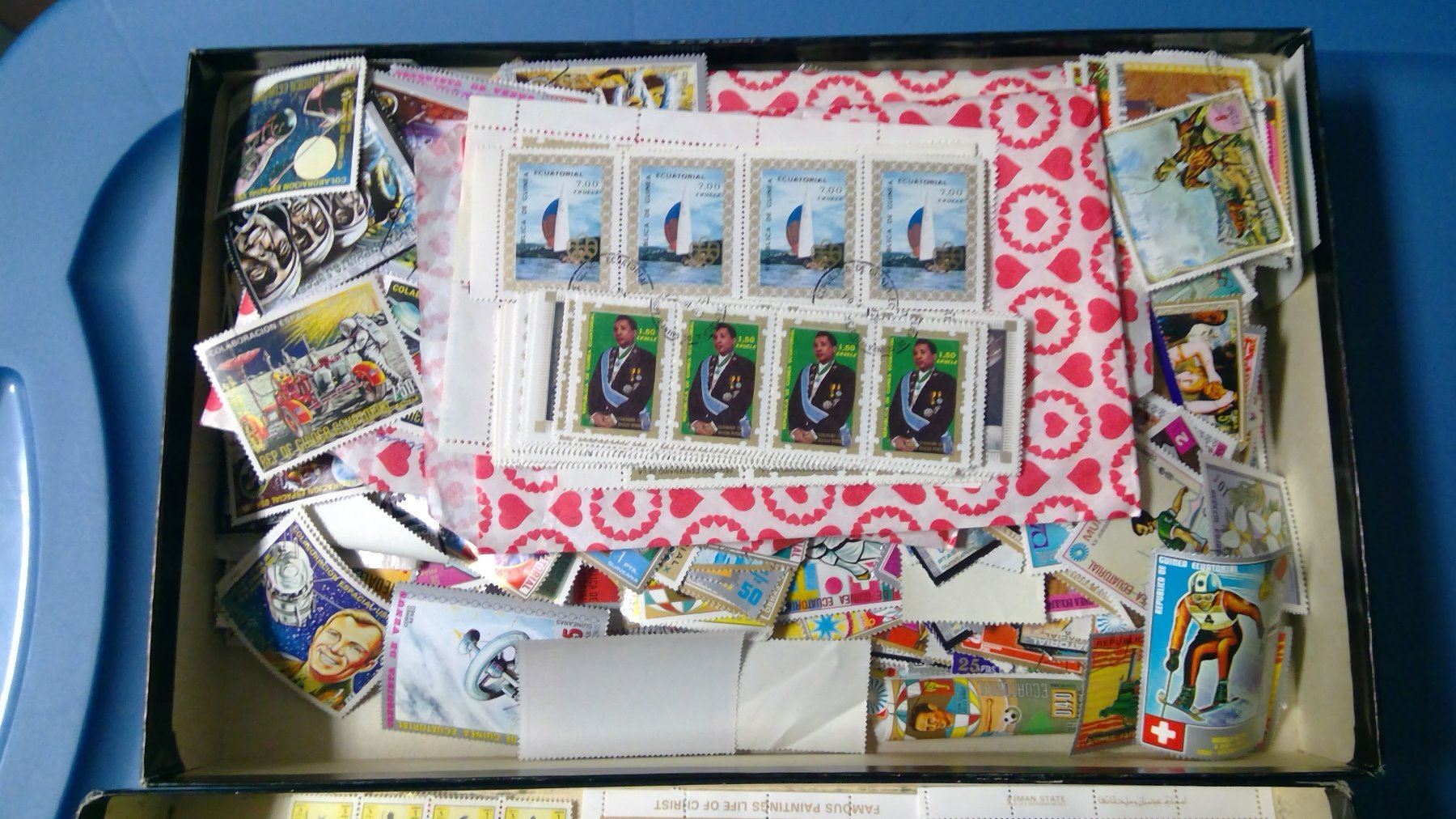 BOX OF ASSORTED EQUITORIAL NEW GUINEA STAMPS