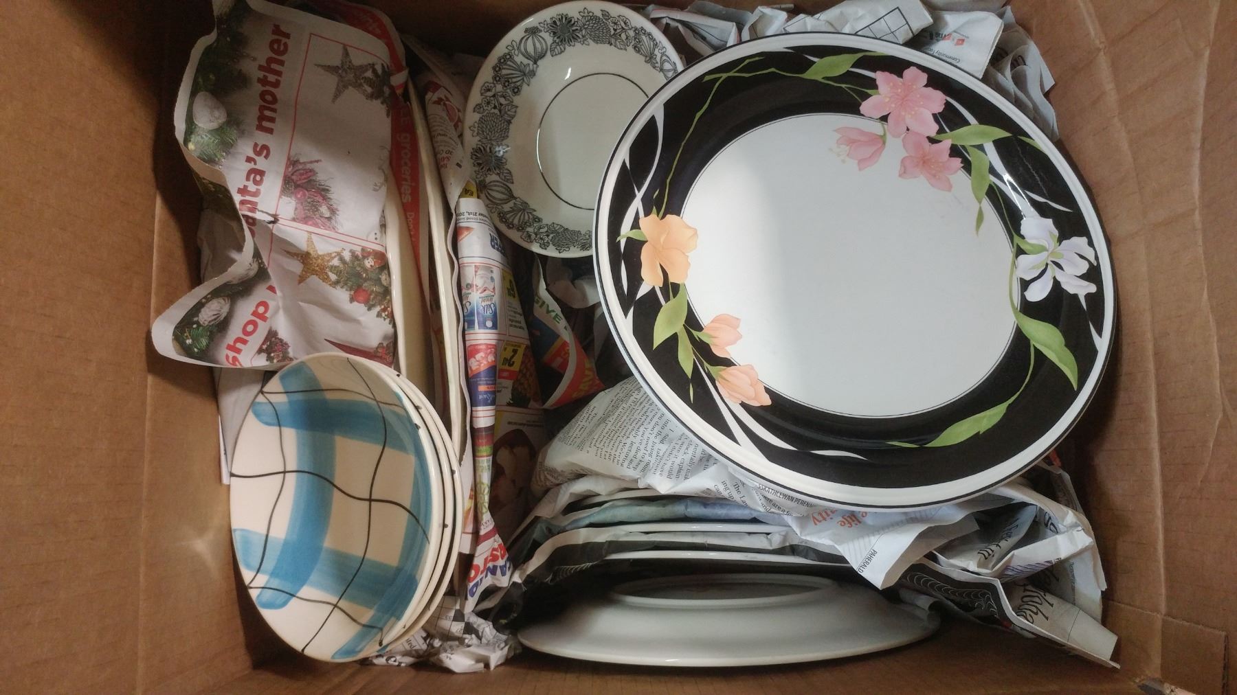 BOX OF ASSORTED ITEMS - DISHES, PLATES, BOWLS, ETC.