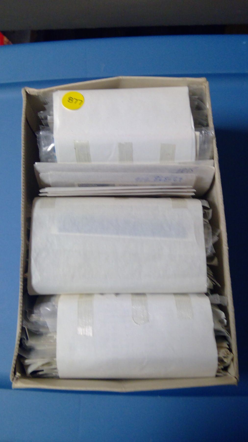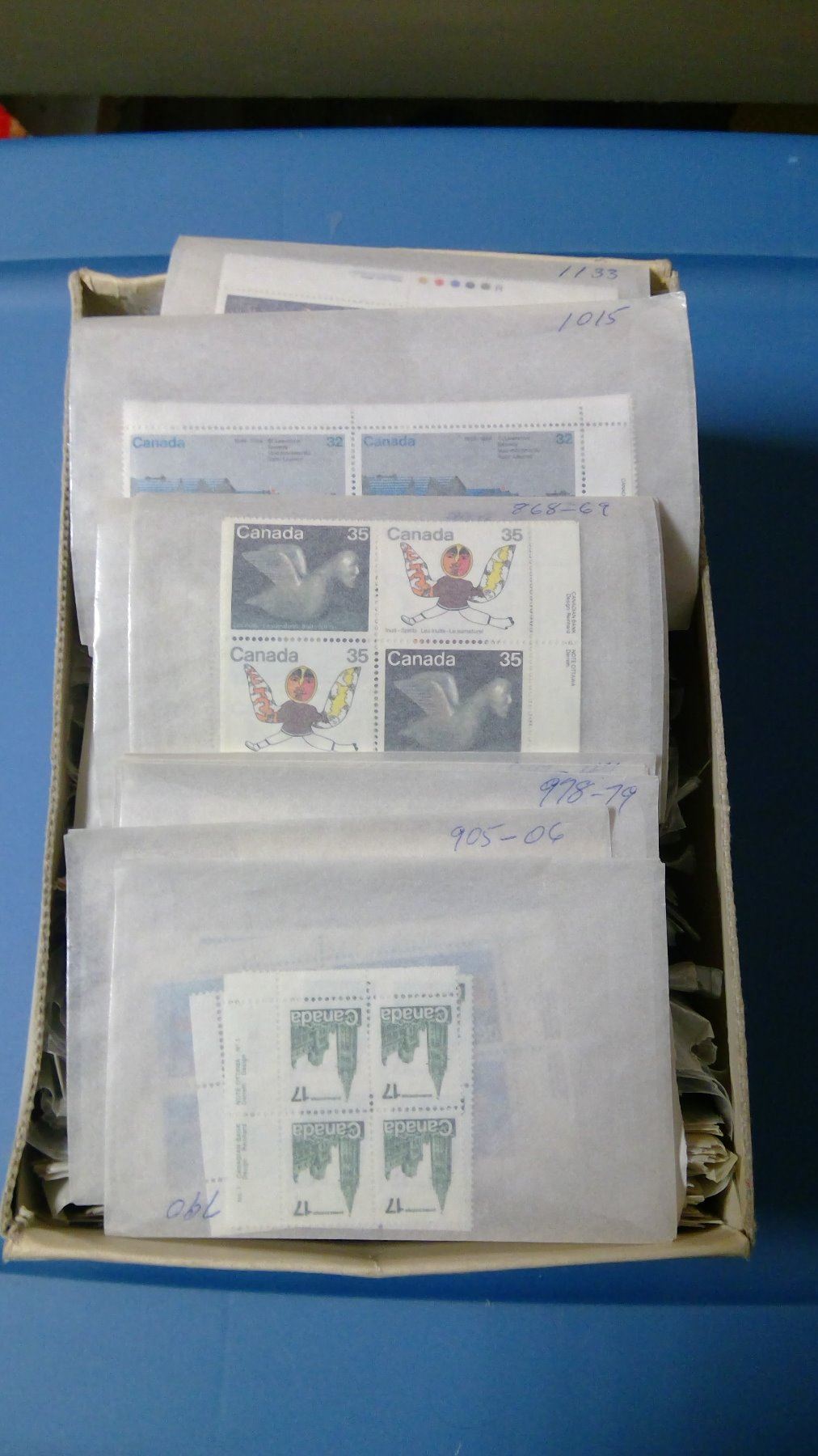 BOX OF ASSORTED STAMPS BLOCK OF 3 WITH INDICATION PAPERS