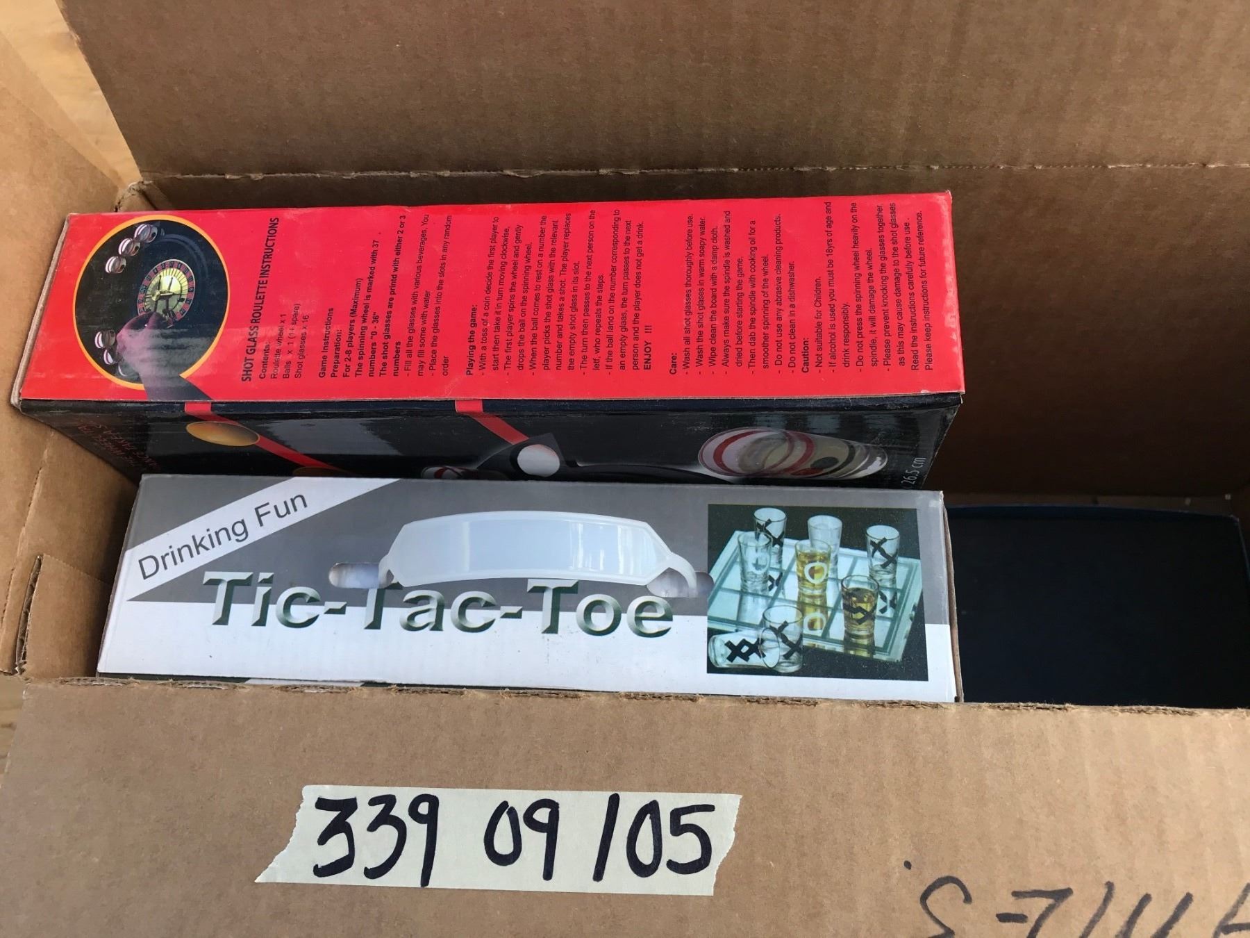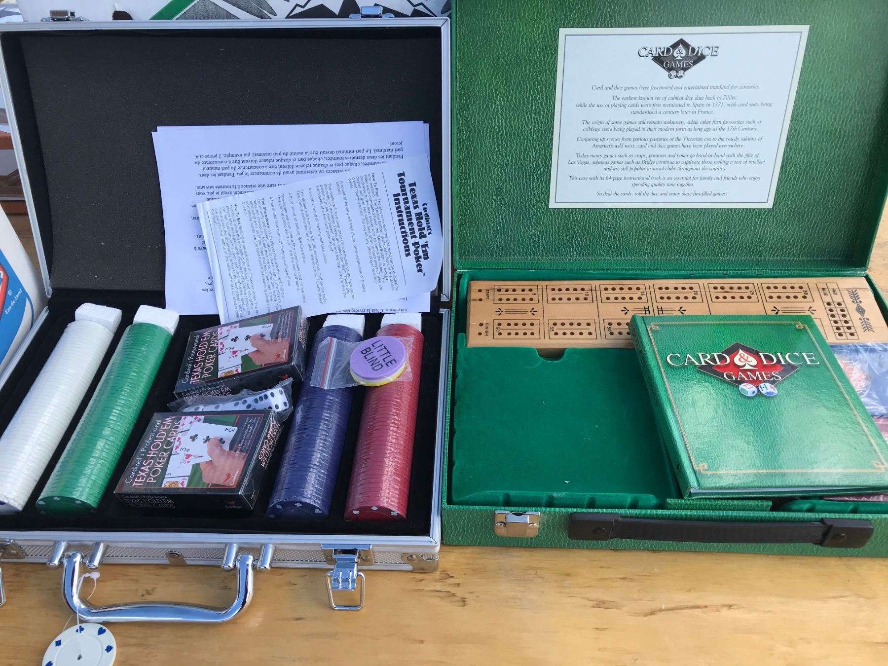 BOX OF GAMES (POKER, CARD DICE, SHOT GLASS ROULETTE)