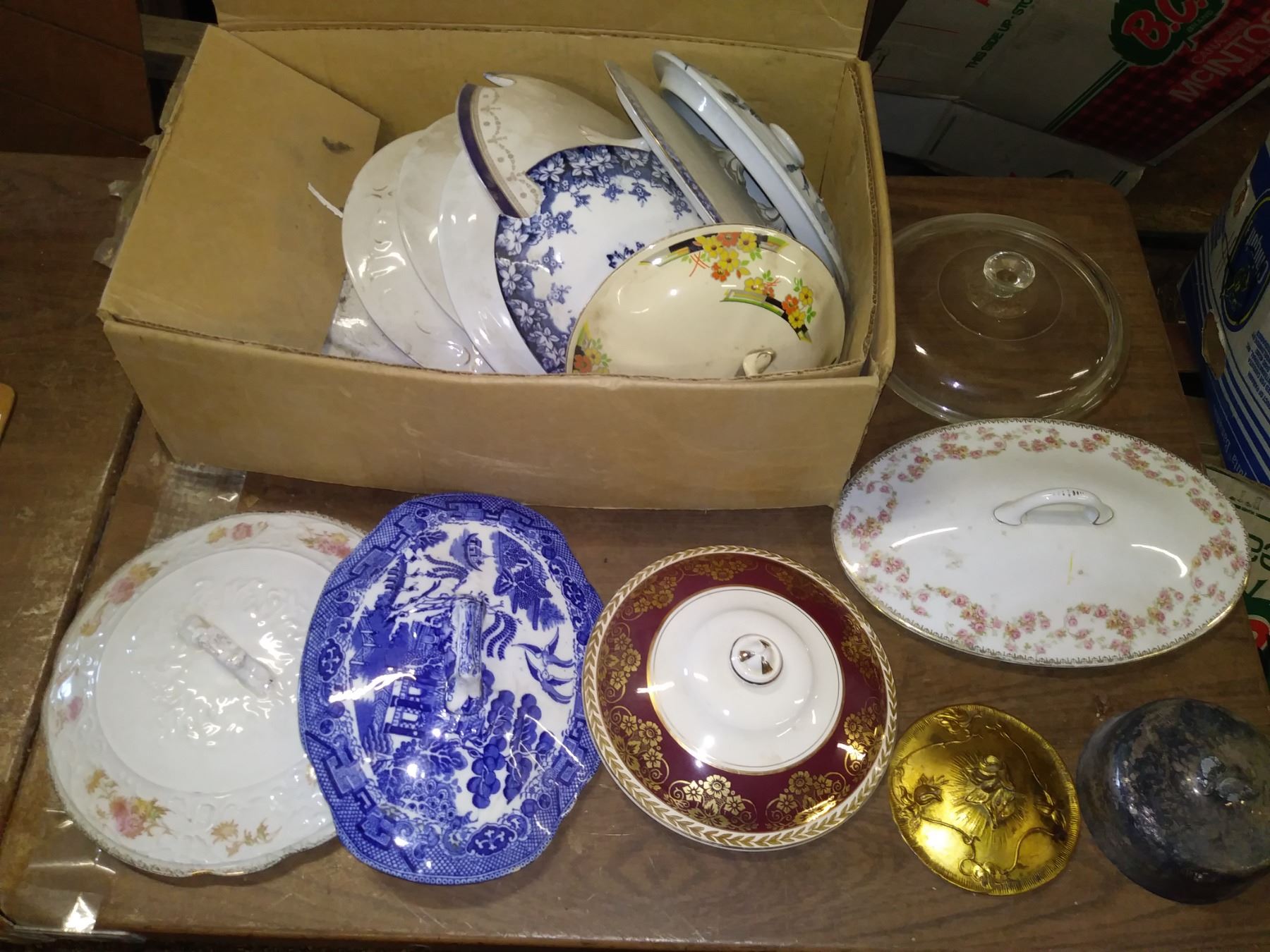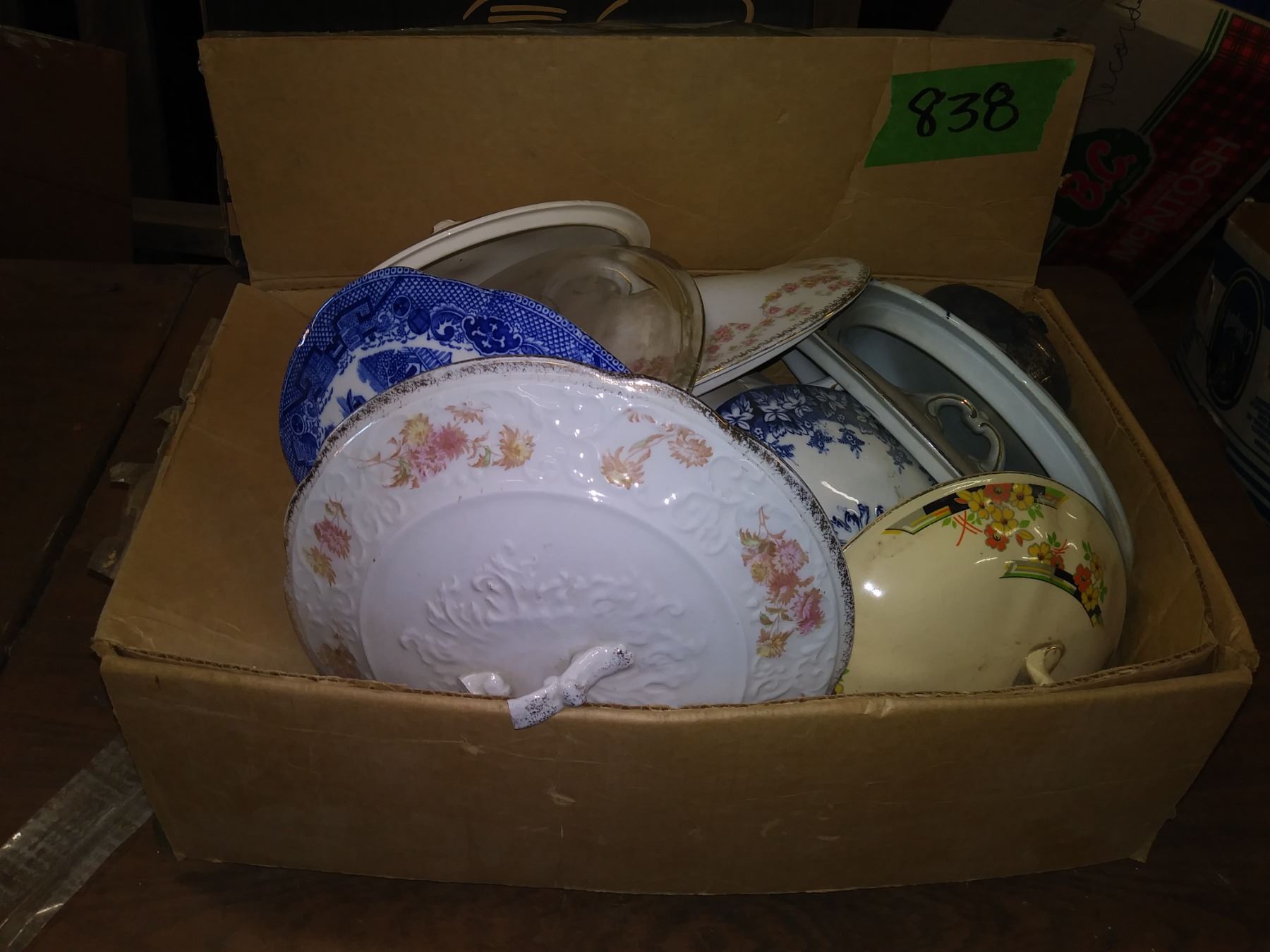 BOX OF GLASS LIDS FOR CASSEROLE OR OTHER DISHES
