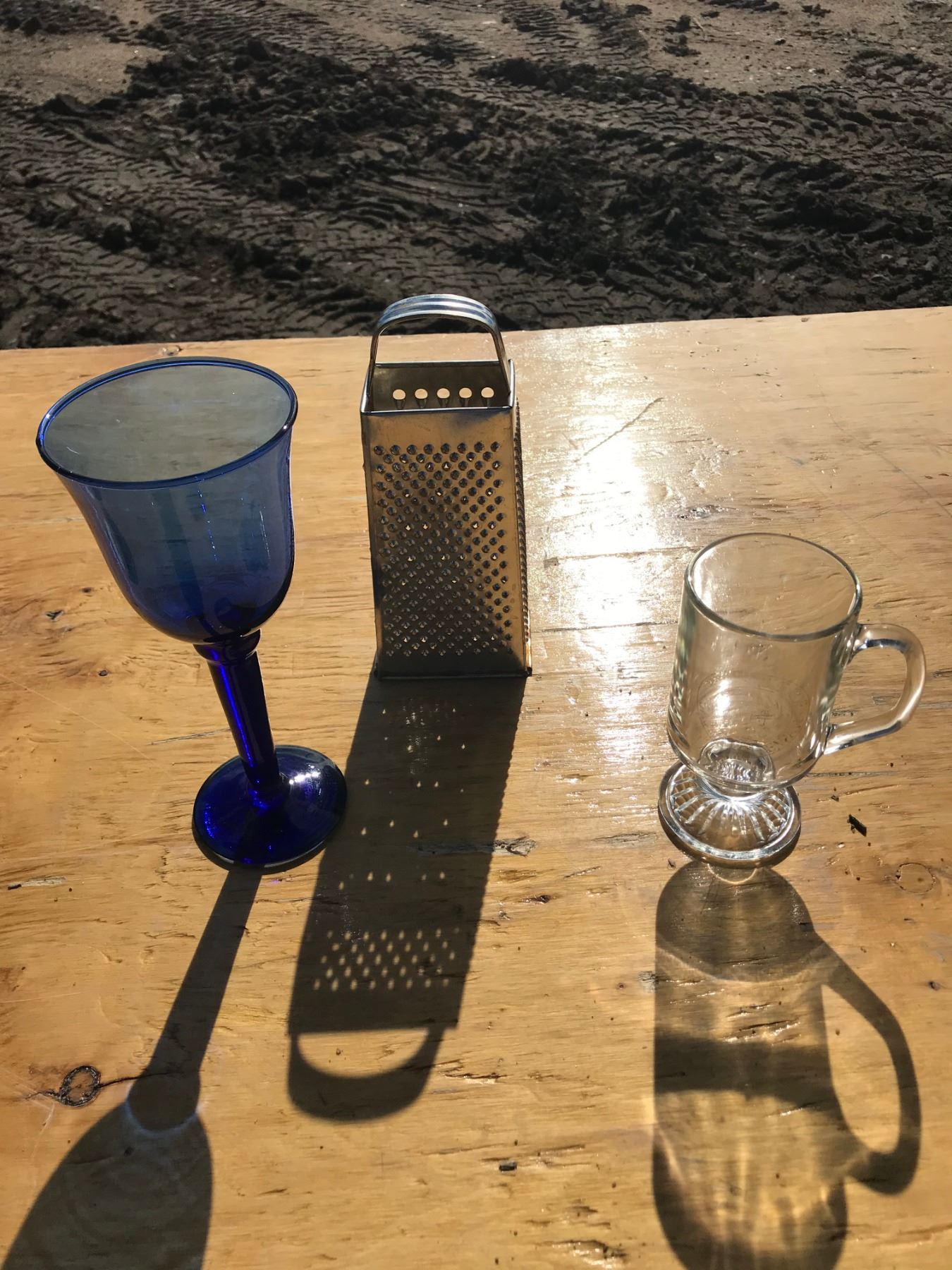 BOX OF KITCHEN ITEMS (GRADDER, CUPS, TALL CUPS,ETC)
