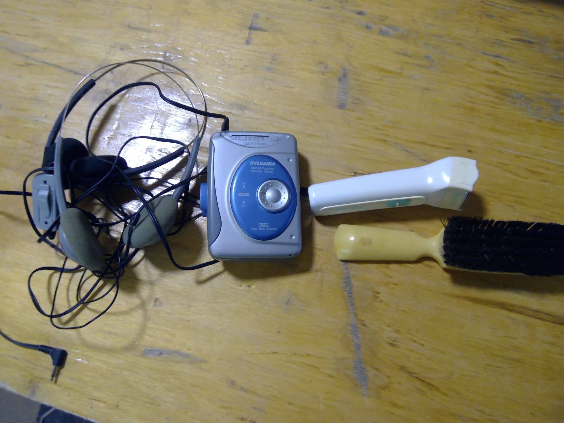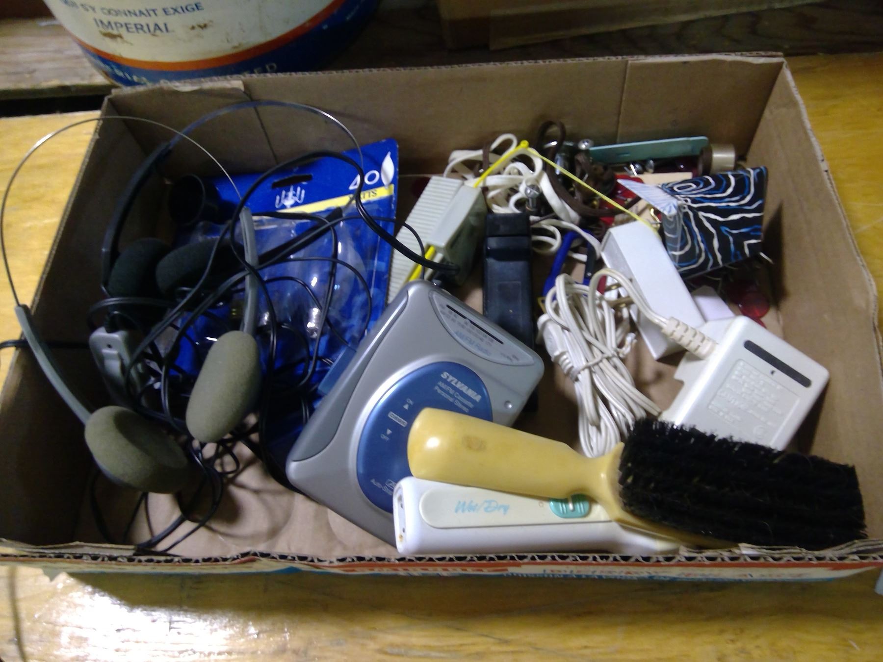 BOX OF LIGHT BULBS + HEADSET + VINTAGE SHAVER