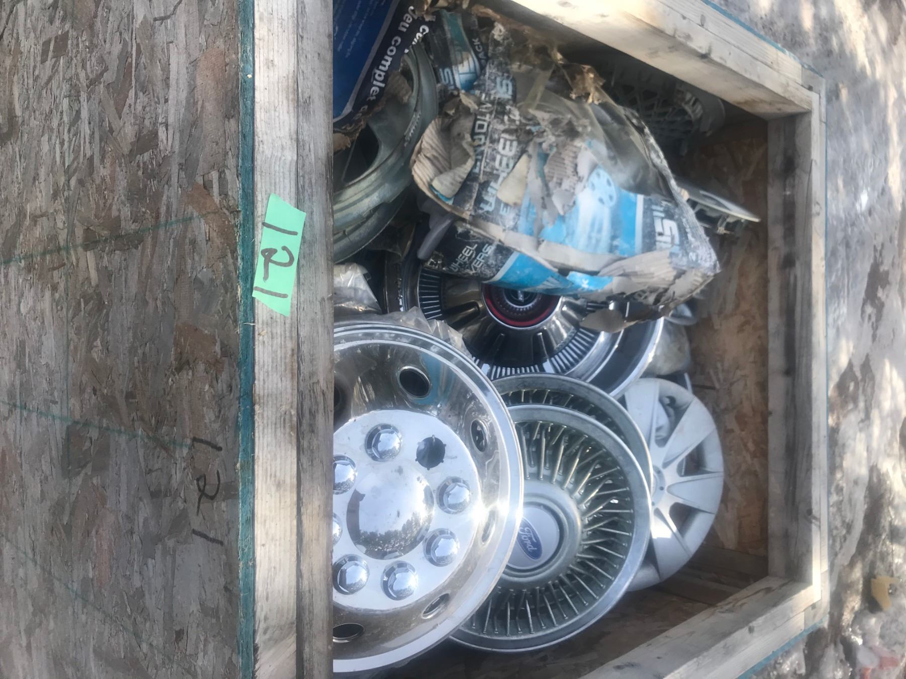BOX OF OVER 100 HUBCAPS - ALL KINDS