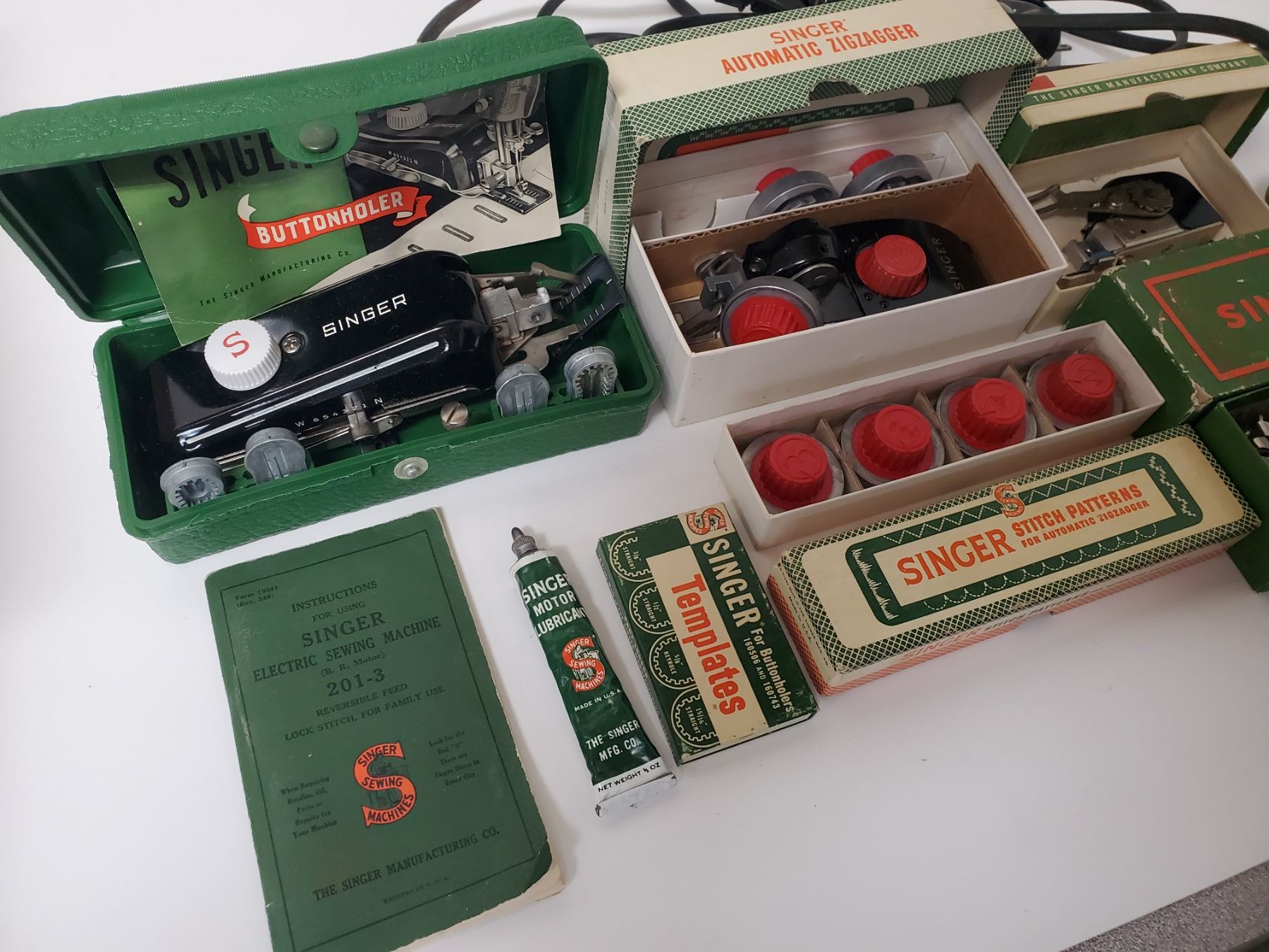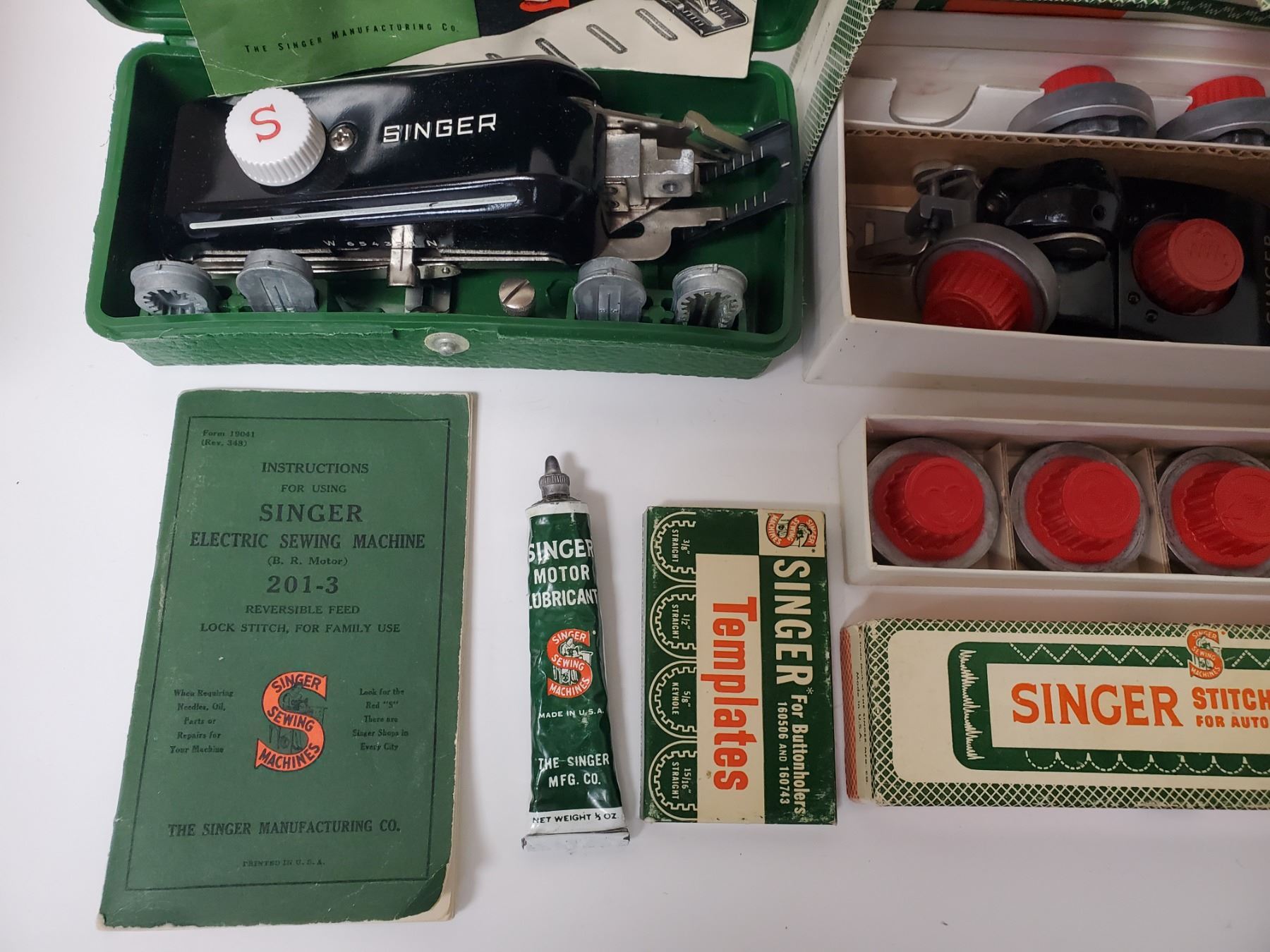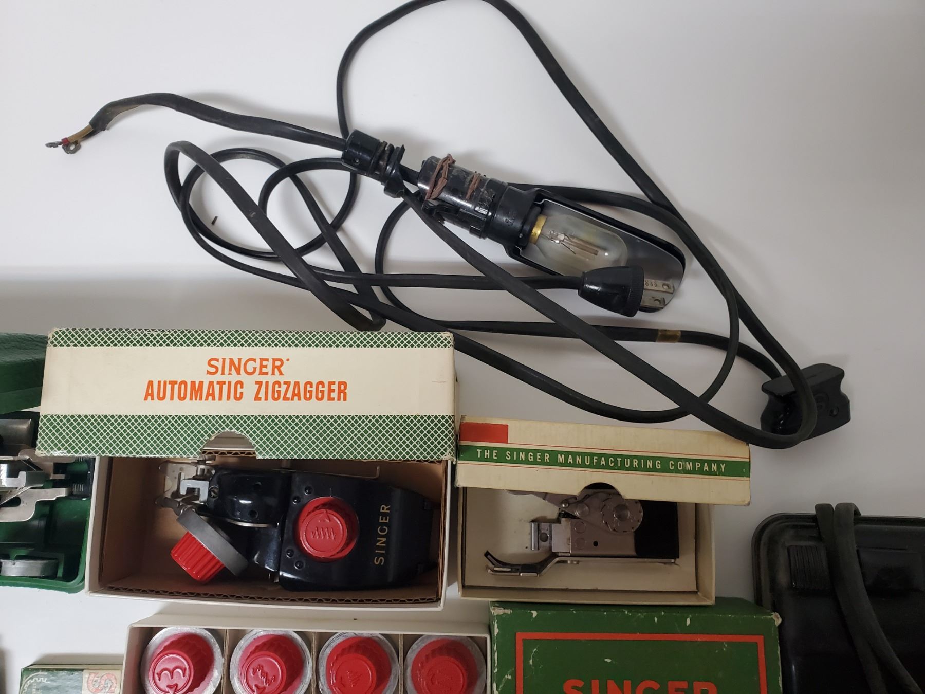 BOX OF SINGER SEWING MACHINE ACCESSORIES
