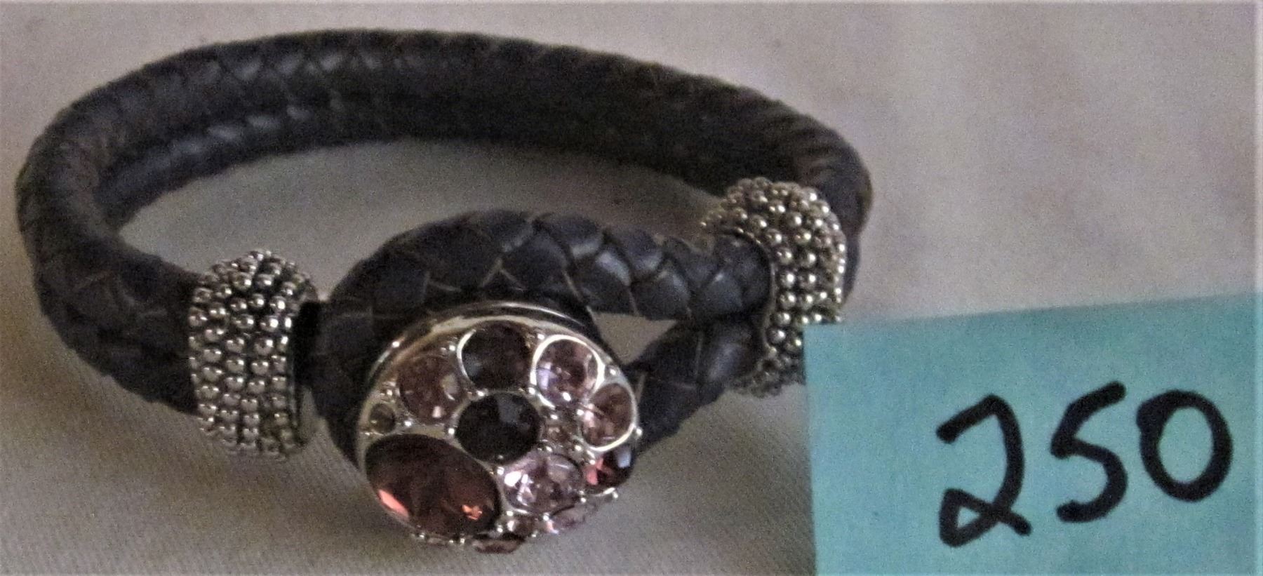 BRAIDED LEATHER BRACELET / RHINSTONE CLASP