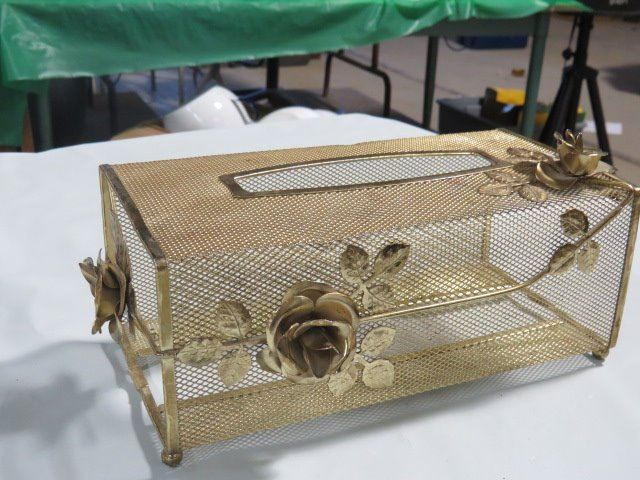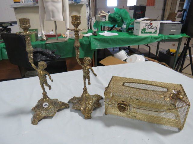 BRASS CHERUB CANDLE STICK HOLDERS, TISSUE BOX COVER