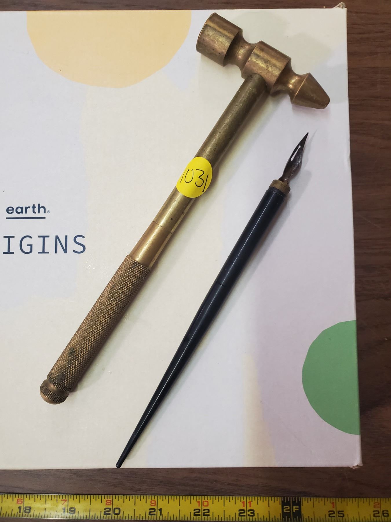 BRASS HAMMER AND ANTIQUE FOUNTAIN PEN