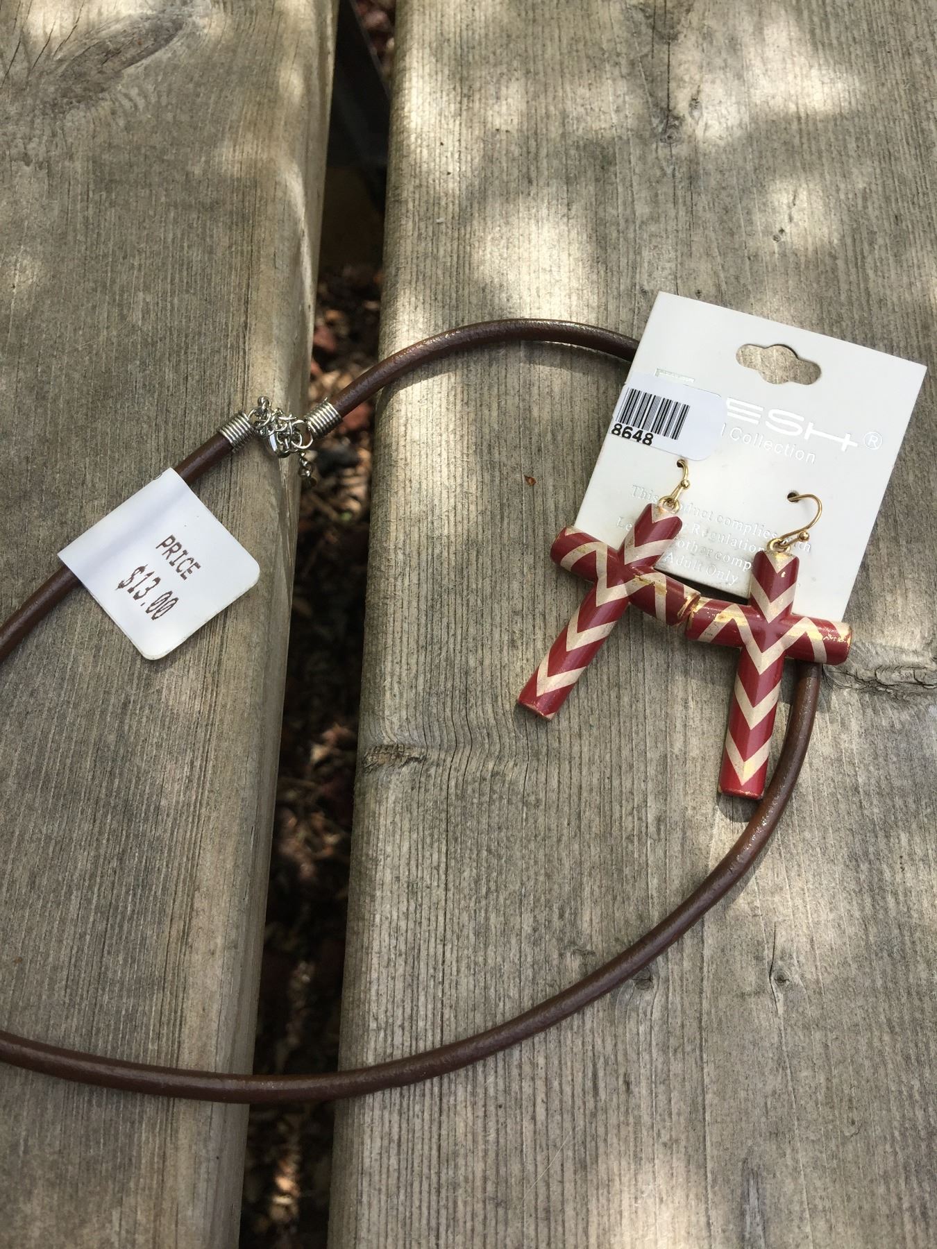 BROWN LEATHER ROPE NECKLACE/ GOLD AND BROWN CHEVRON EARRINGS*EARRINGS ARE SCRATCHED UP A BIT BUT STILL LOOK NICE