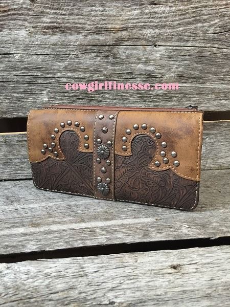 BROWN WESTERN TRIFOLD/ZIP POUCH WALLET/zip pouch wallet