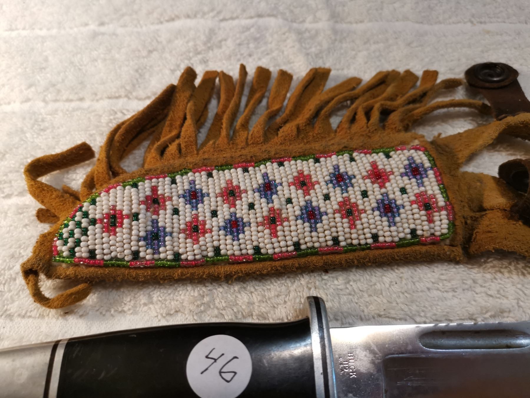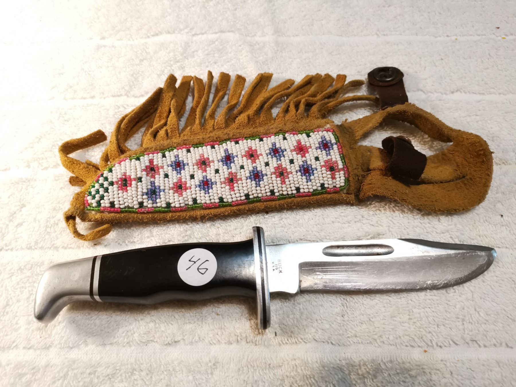 BUCK USA HUNTING KNIFE WITH BEADED SHEATH