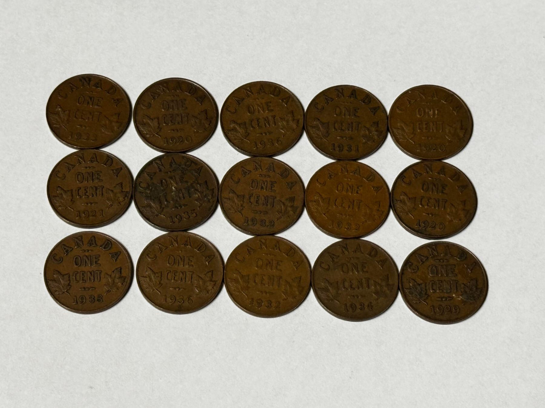 Bag of 15 King George V Pennies.
