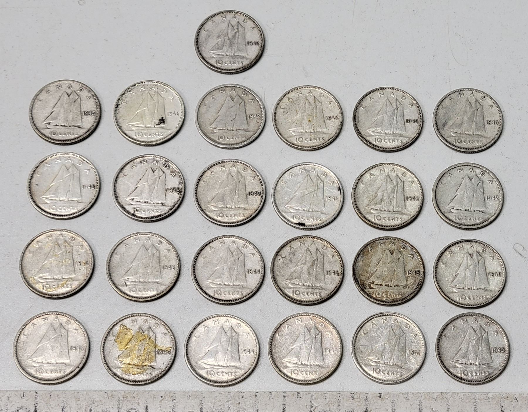 Bag of 25 King George Silver Ten Coins