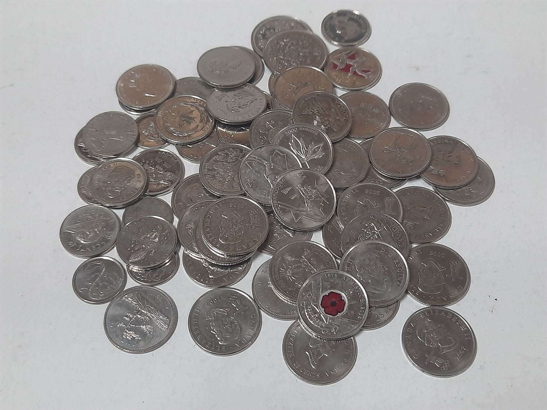 Bag of Canadian 25 Cents. (It also includes some 5 , 10, 50 Cents and Colourful 25 Cents)