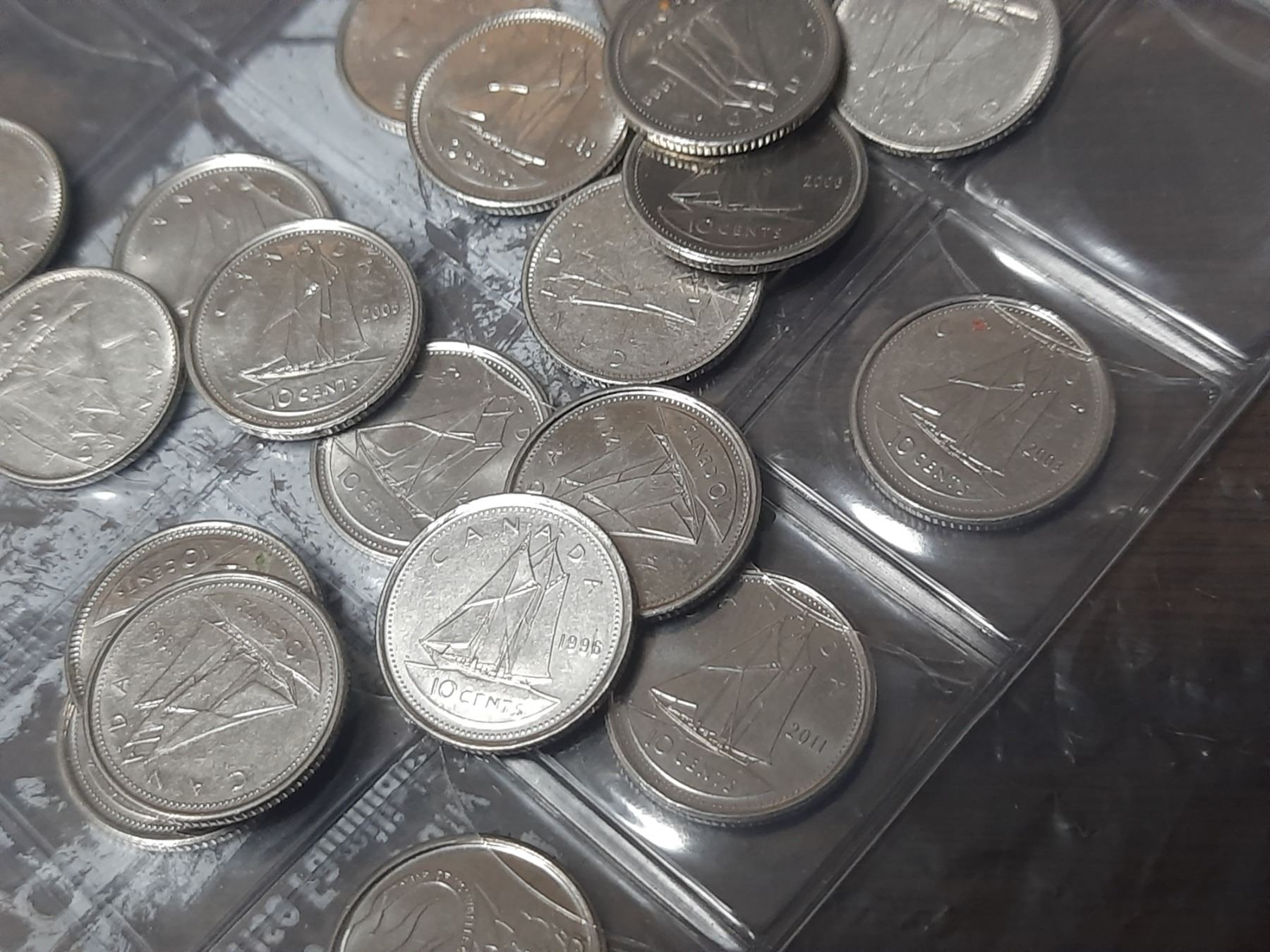 Bag of Special Canadian 10 Cents Coins. (Approx 50)