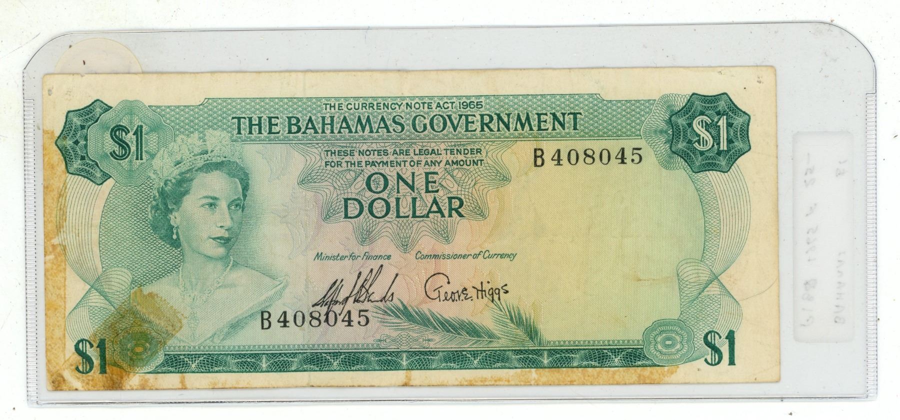 Bahahas1965 $1. Queen Elizabeth/Fish and coral. Fine.