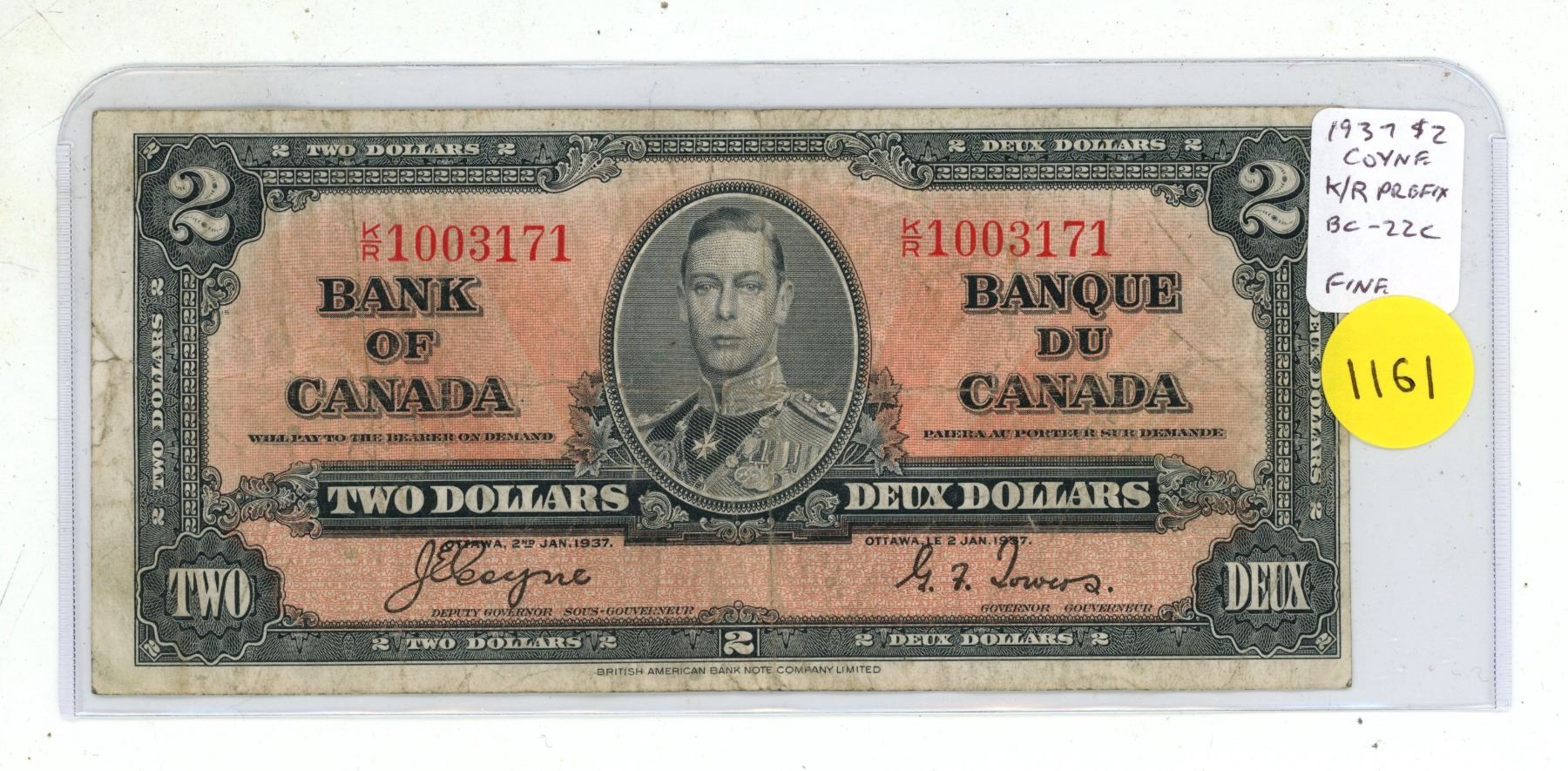 Bank of Canada 1937 $2. Coyne-Towers signatures. K/R Prefix. BC-22c. Fine12.