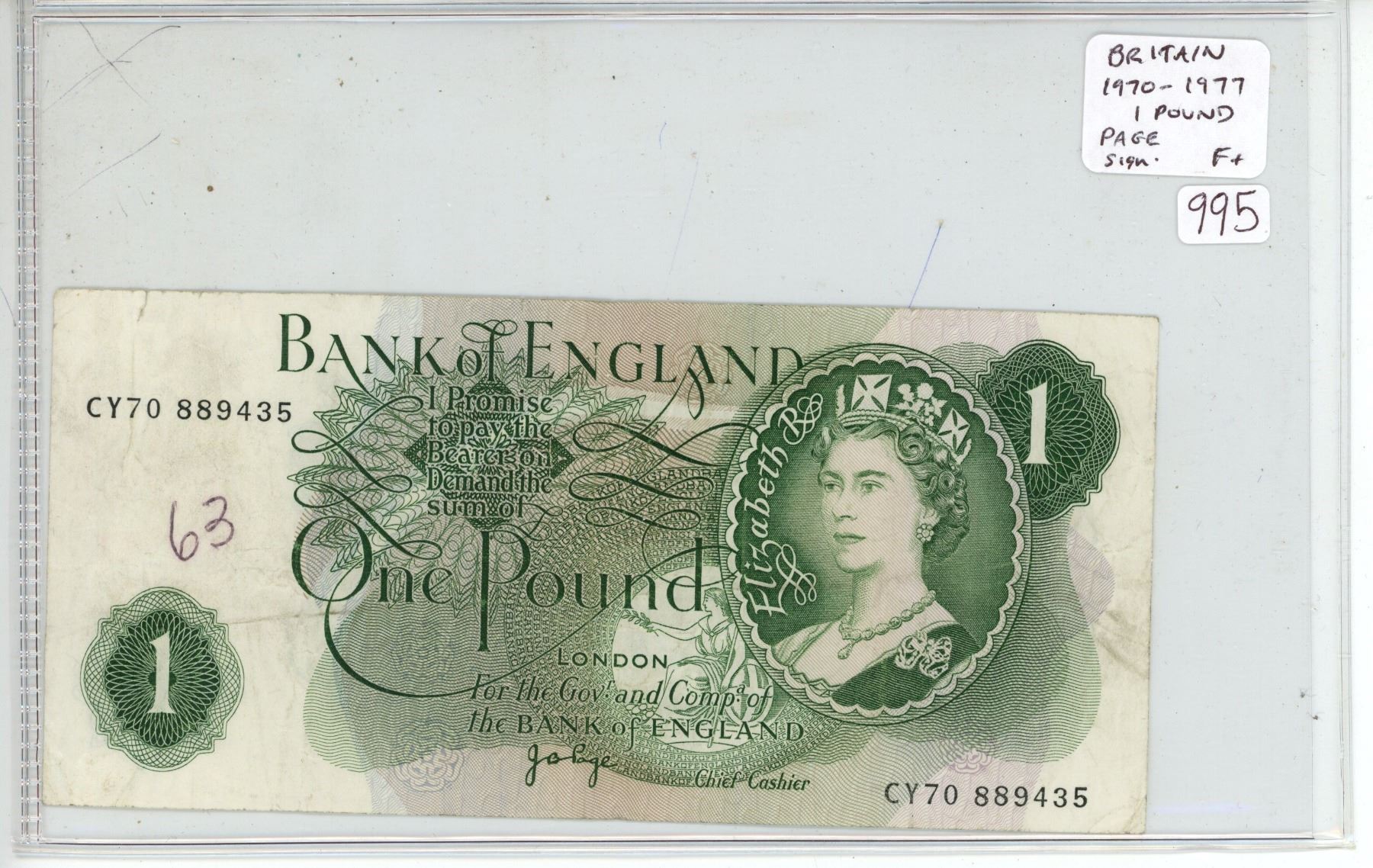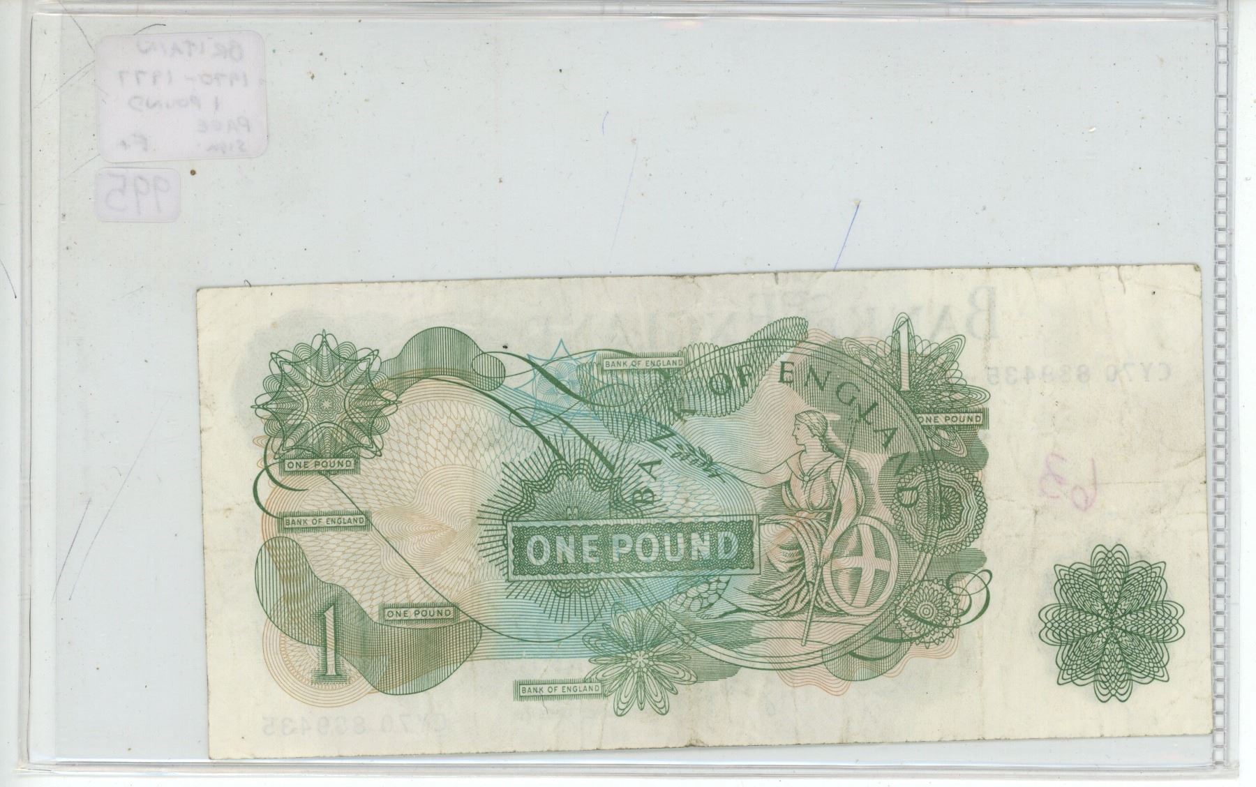 Bank of England. 1970 – 1977 1 Pound. Page signature. F+.