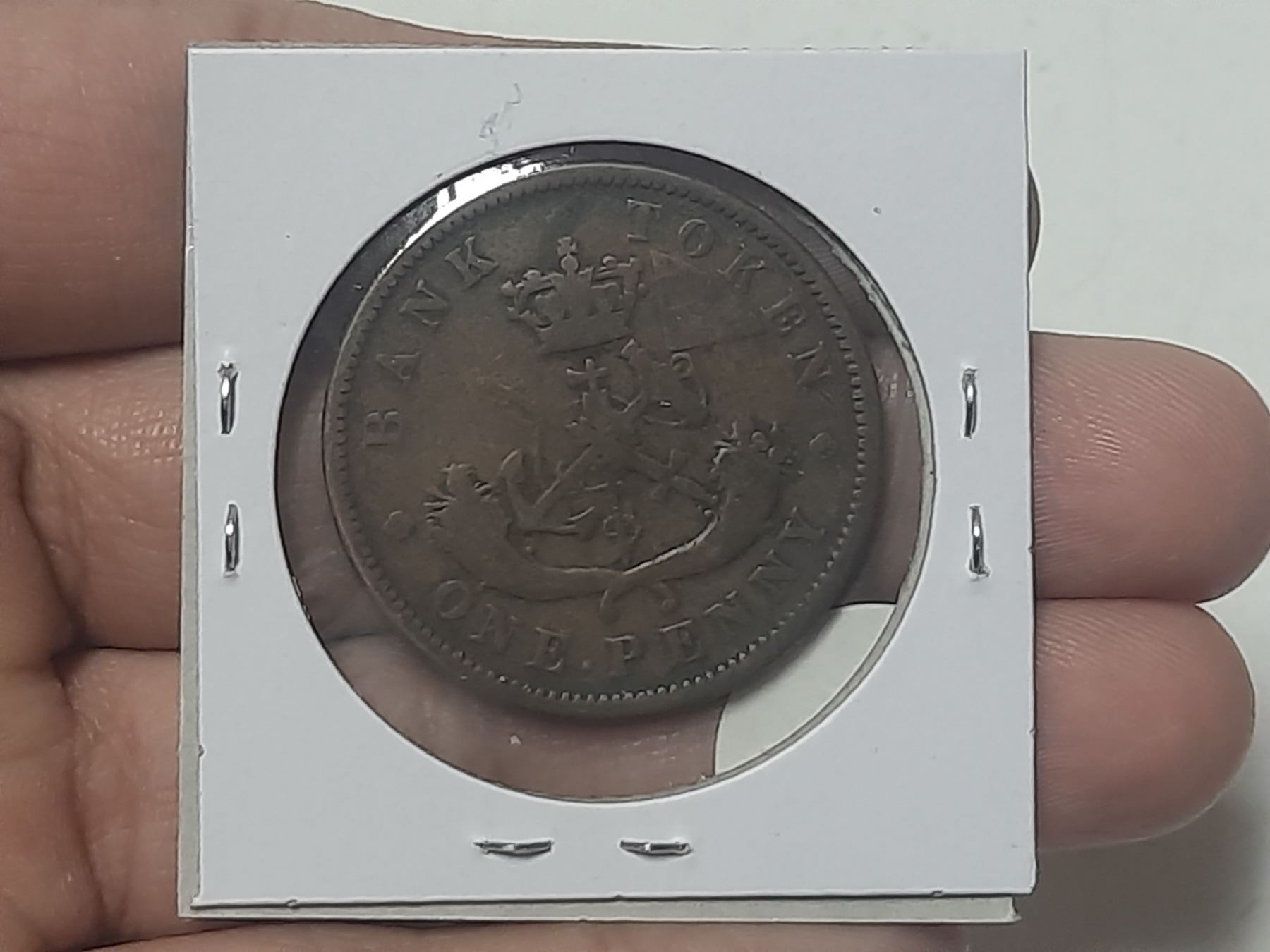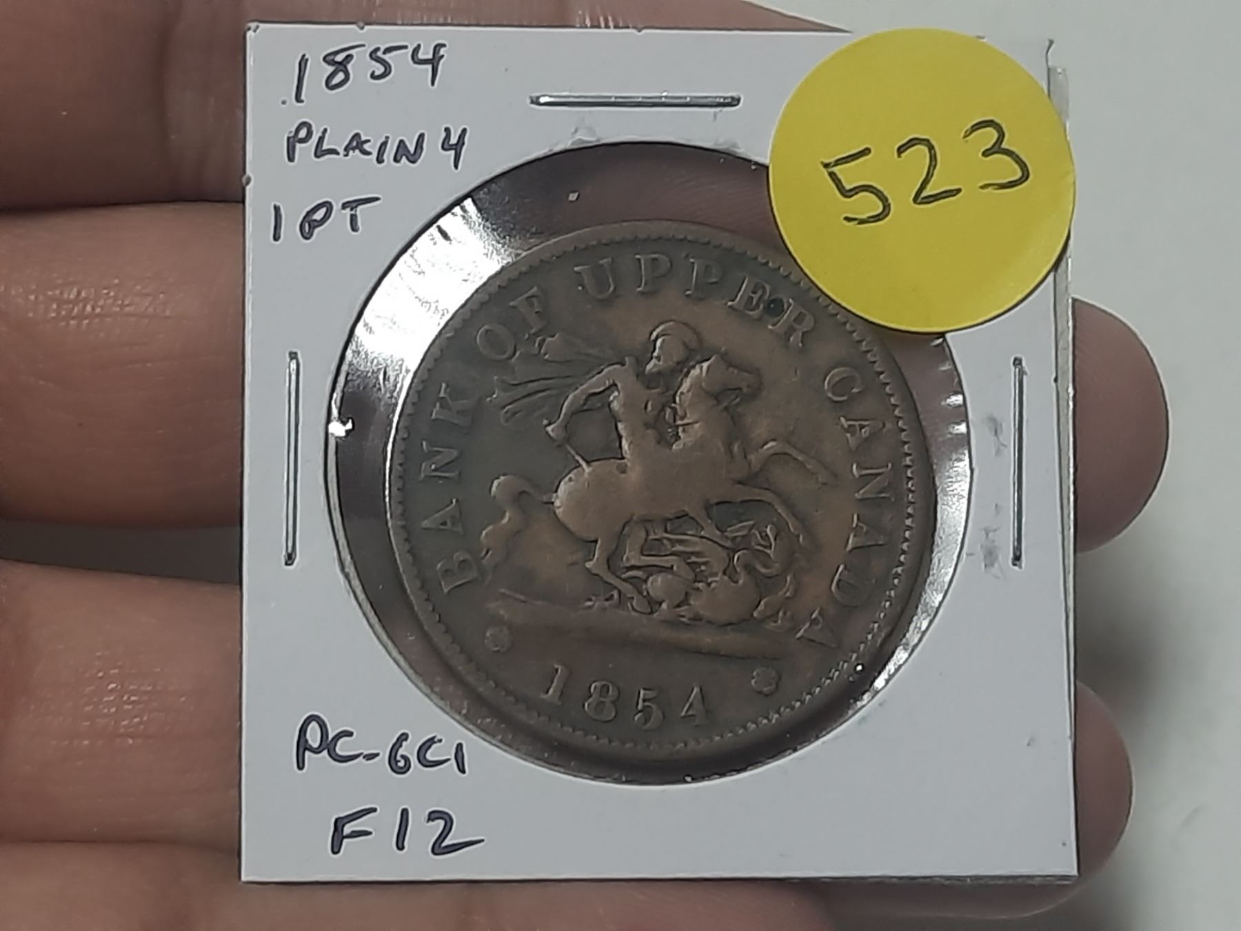 Bank of Upper Canada 1854 1 Penny Pre-Confederation Token. Plain 4. Saint George slaying Dragon. PC-6C1. F12.