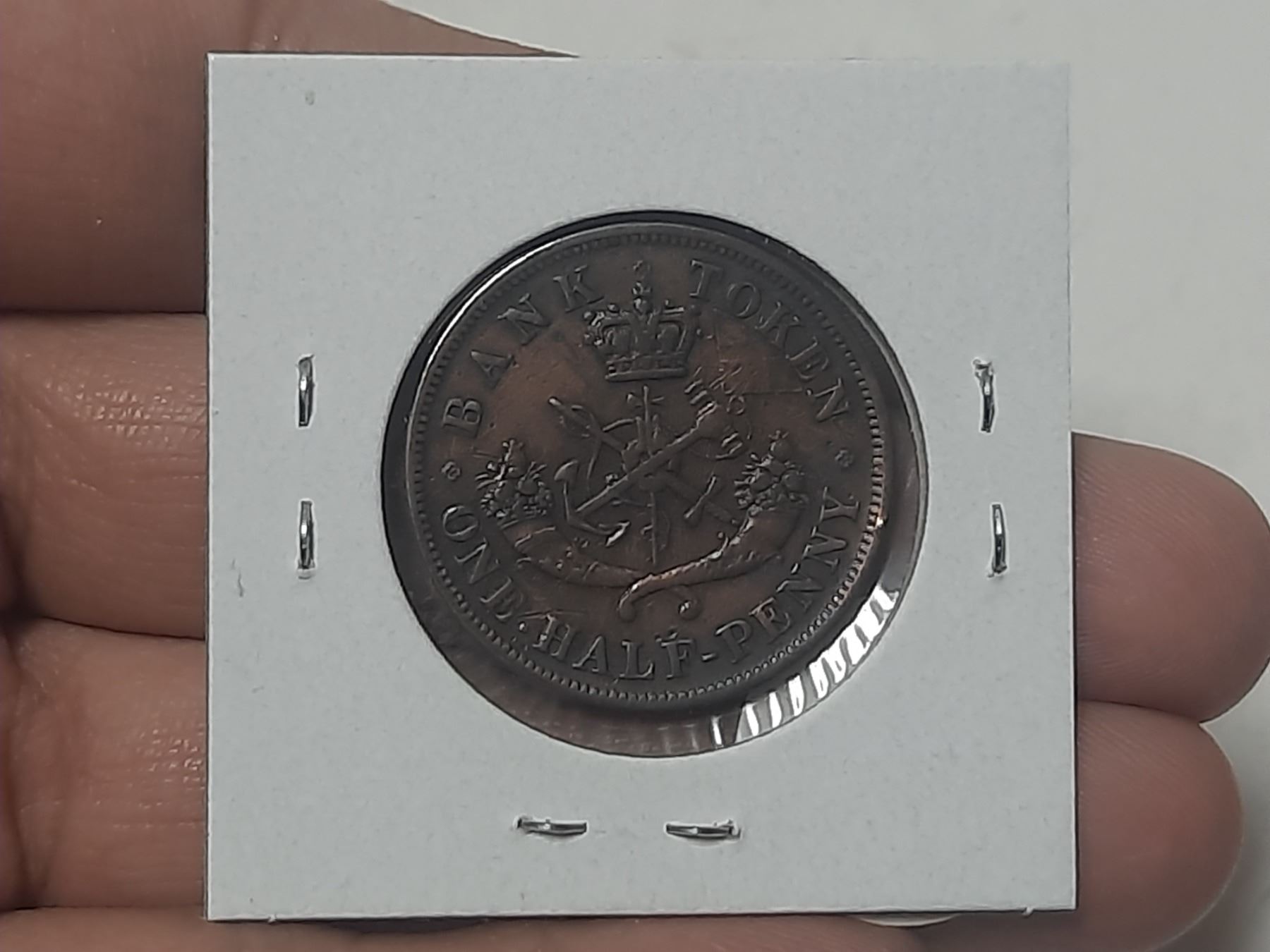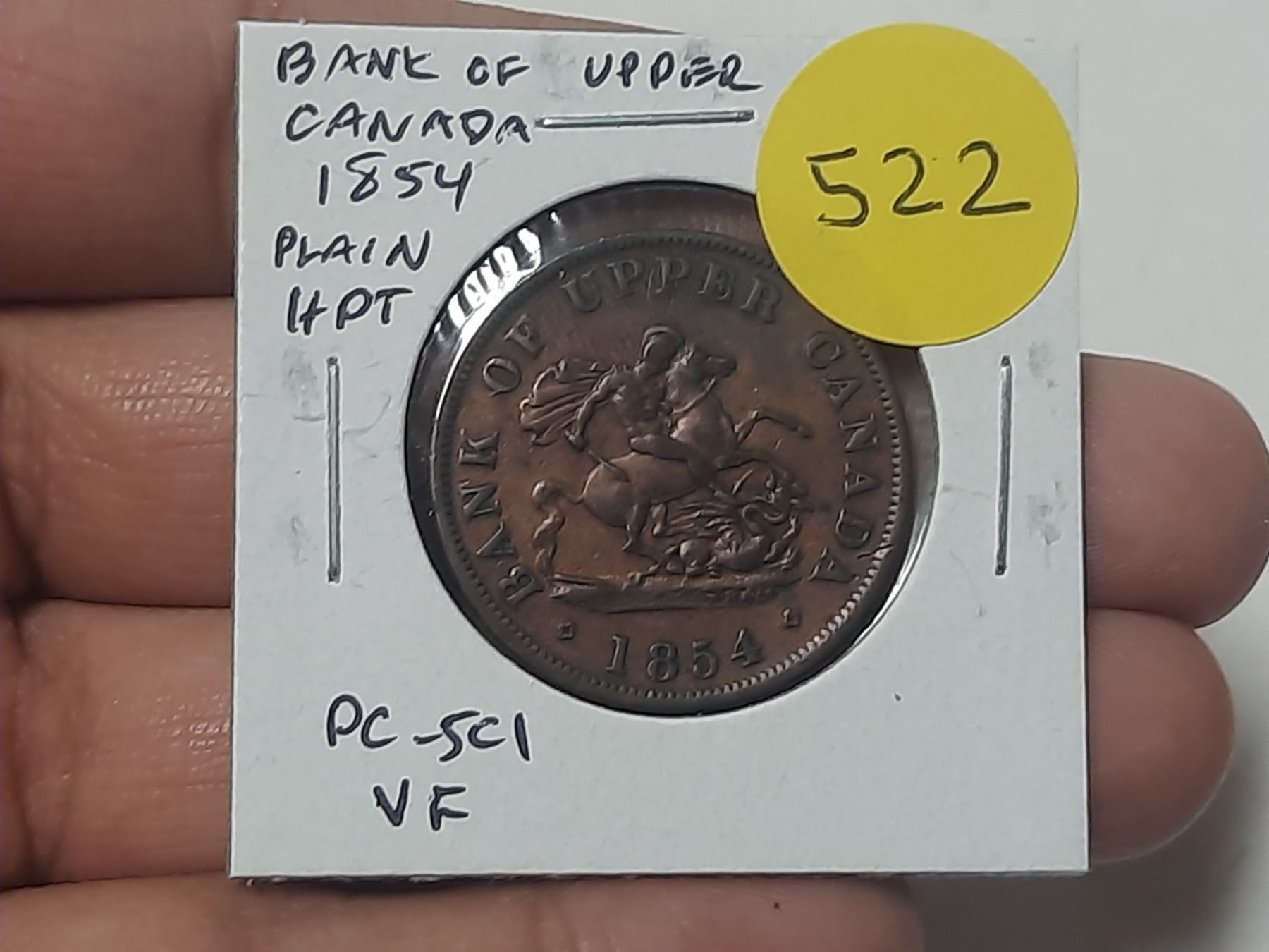 Bank of Upper Canada 1854 Half Penny Pre-Confederation Token. Plain 4. Saint George slaying Dragon. PC-5C1. VF20.