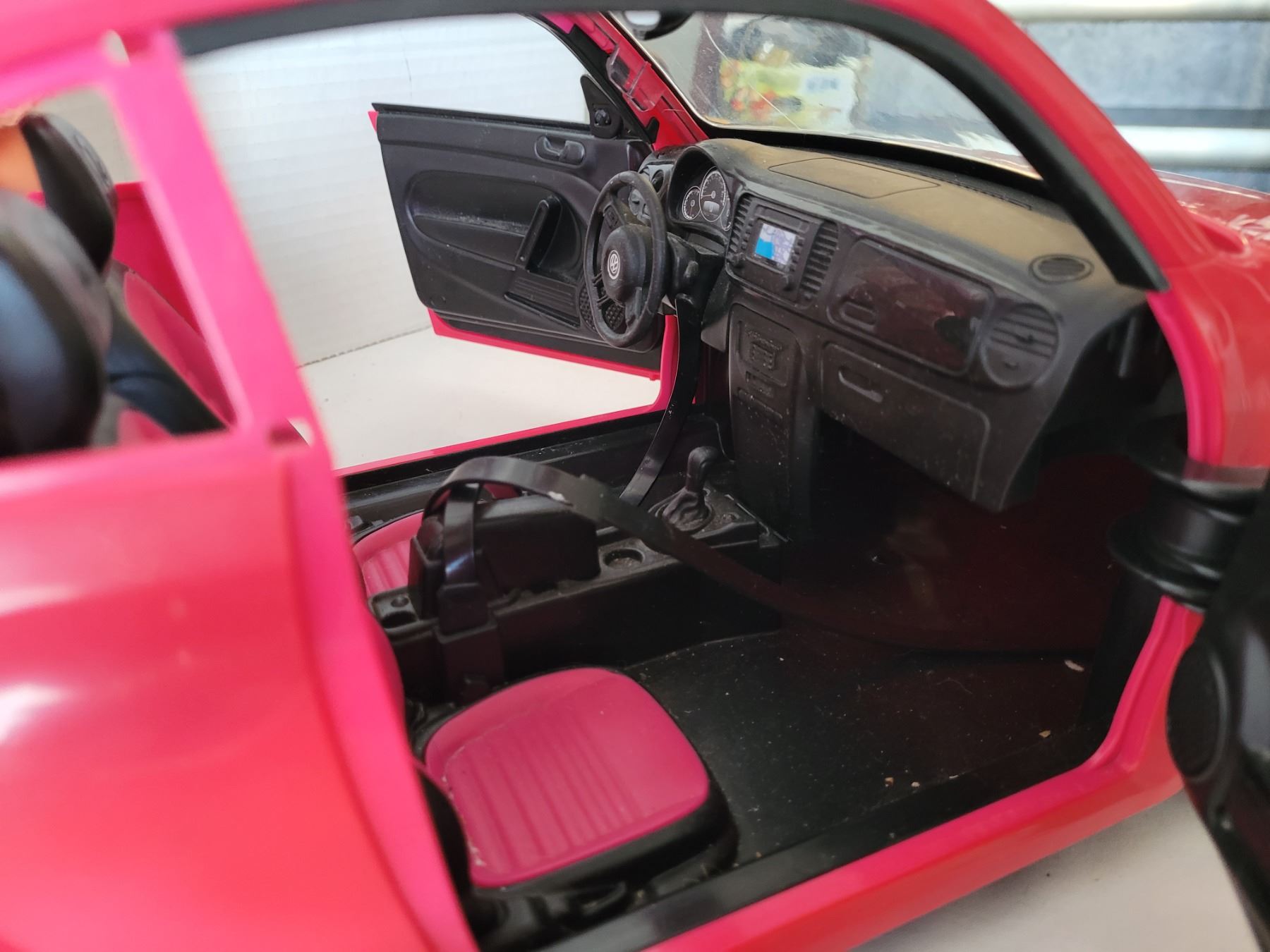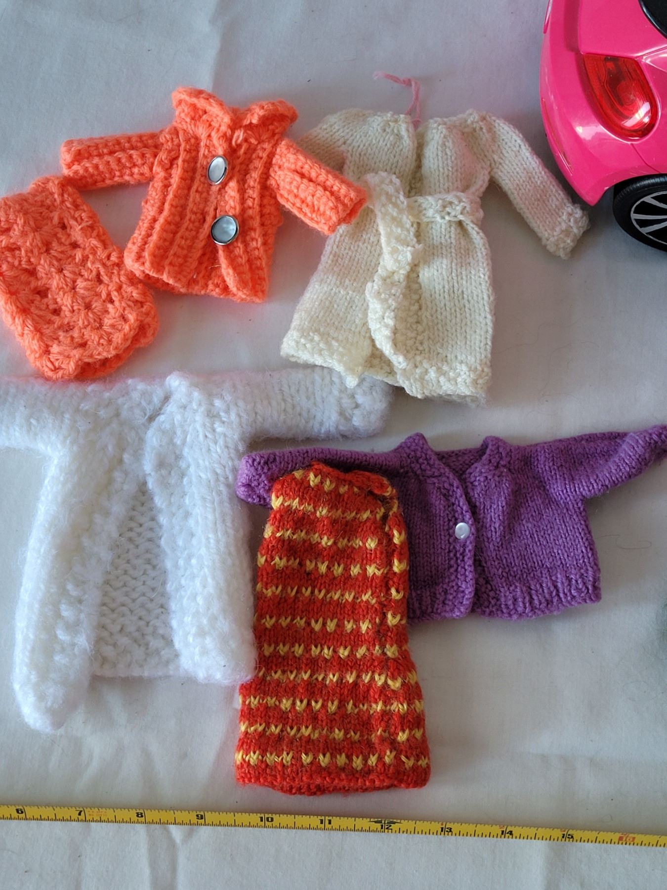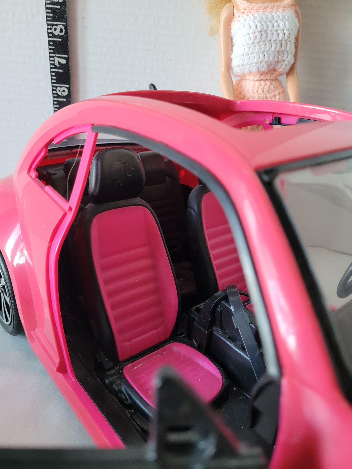 Barbie VW bug car, Doll & homemade knit & crochet clothes.