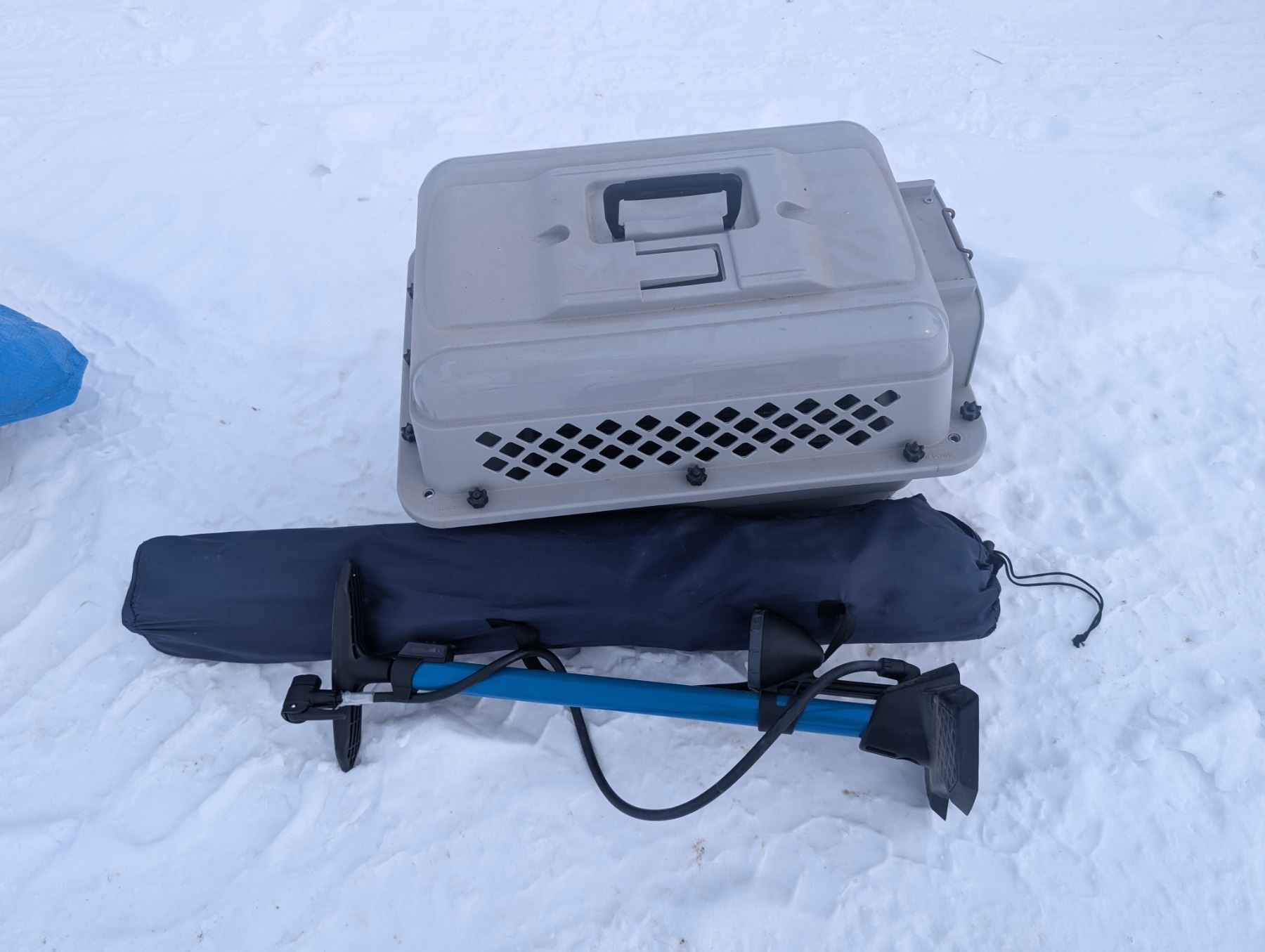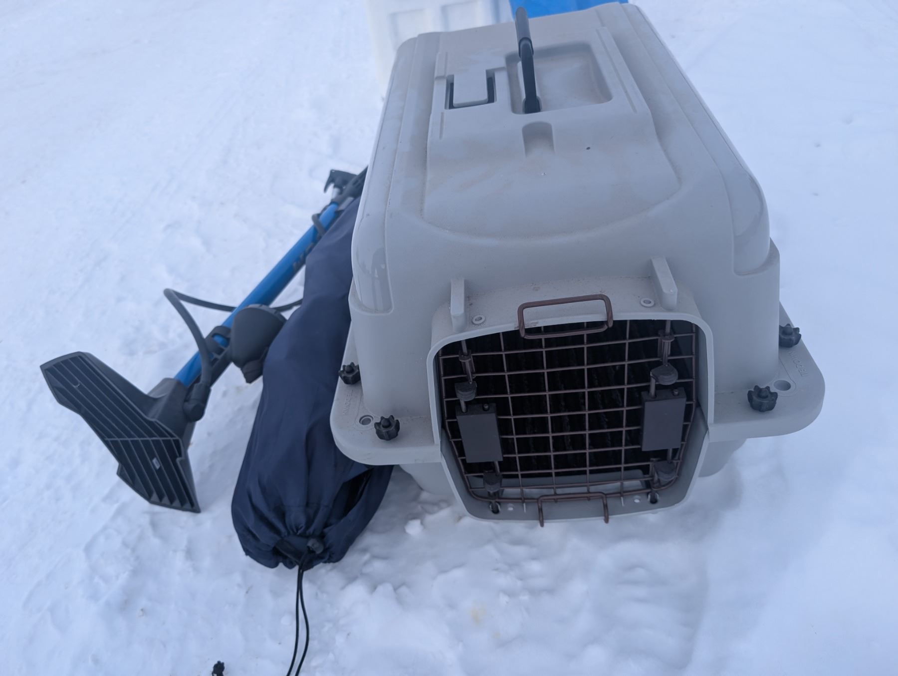 Barely Used 18"x12" Kennel, Barely Used Pump, and Fold out Chair