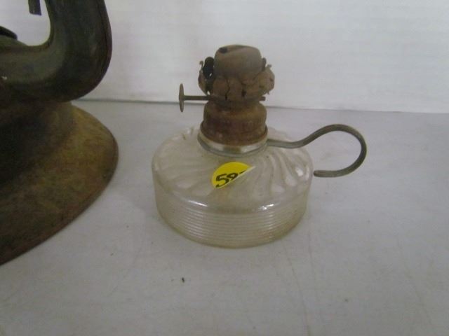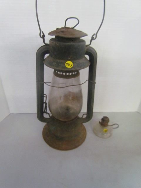 Barn Lantern (Dominion Glass) + Miniature Glass Lamp