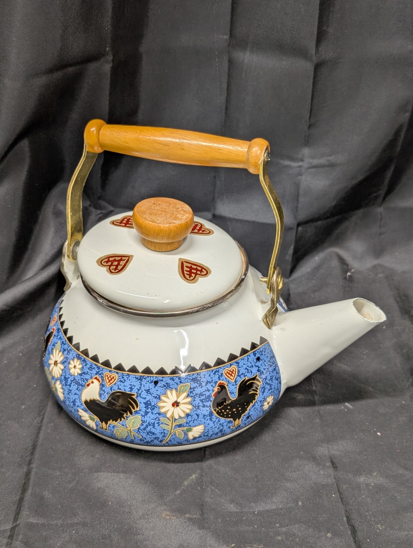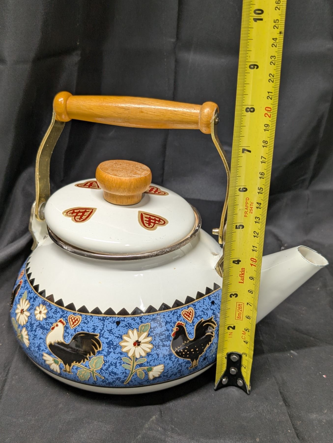 Barn yard Blues Vintage Water Kettle W/ Wooden handle