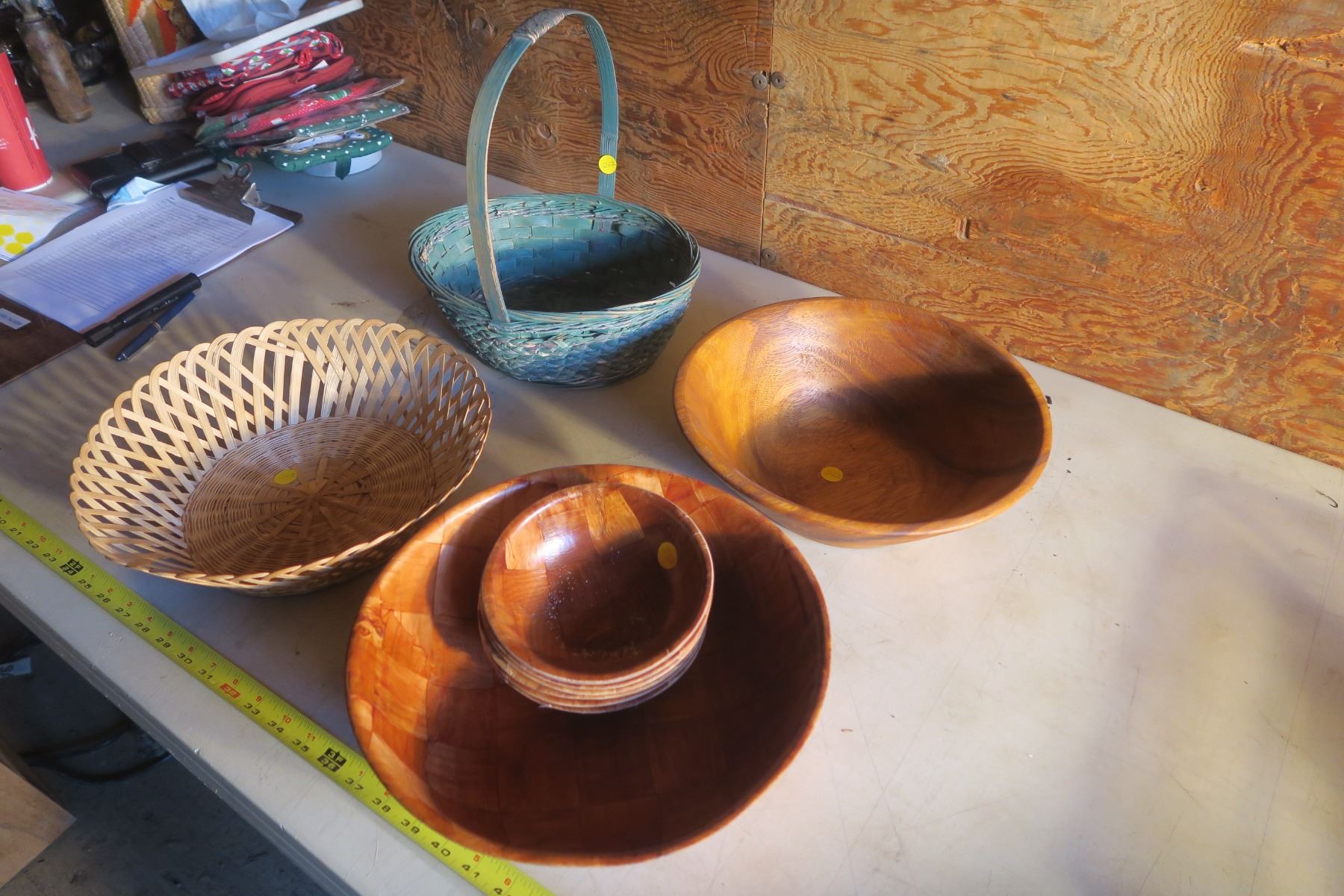 Basket and Wooden Bowls