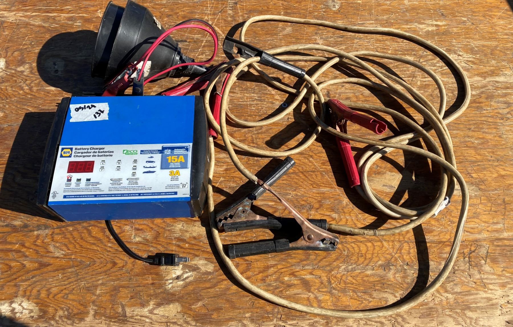 Battery Charger + Boaster Cables + Etc