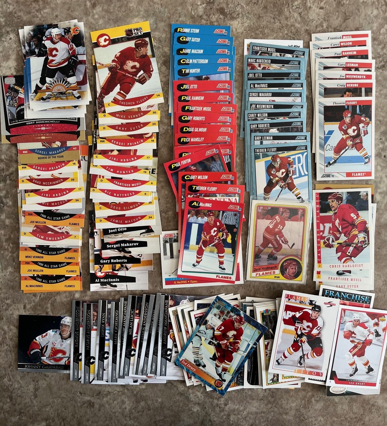 Battle of Alberta. Lot of 300ish Calgary Flames & Edmonton Oilers hockey cards. Mixed Brands. Mixed Years. Messier. Kurri. Vernon. Fleury.