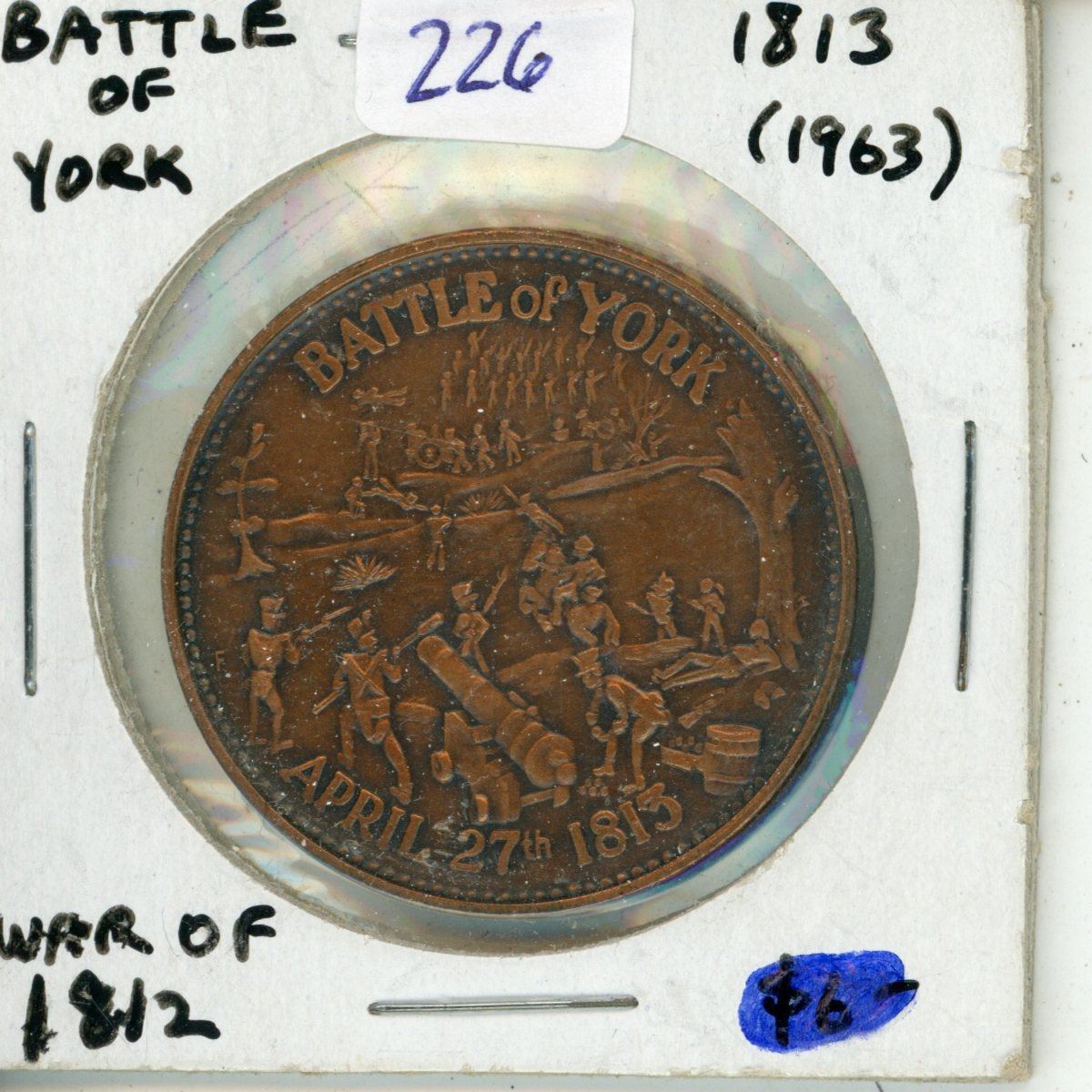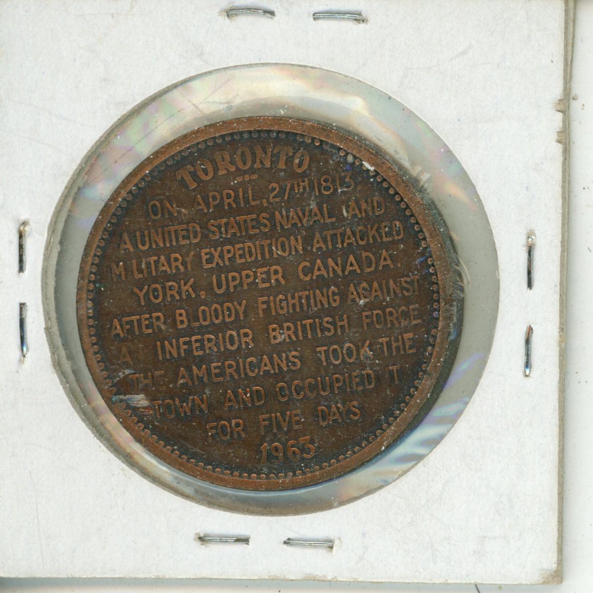 Battle of York bronze medal. Issued in 1963 to mark the centennial of this famous battle in the War of 1812. Uncirculated.