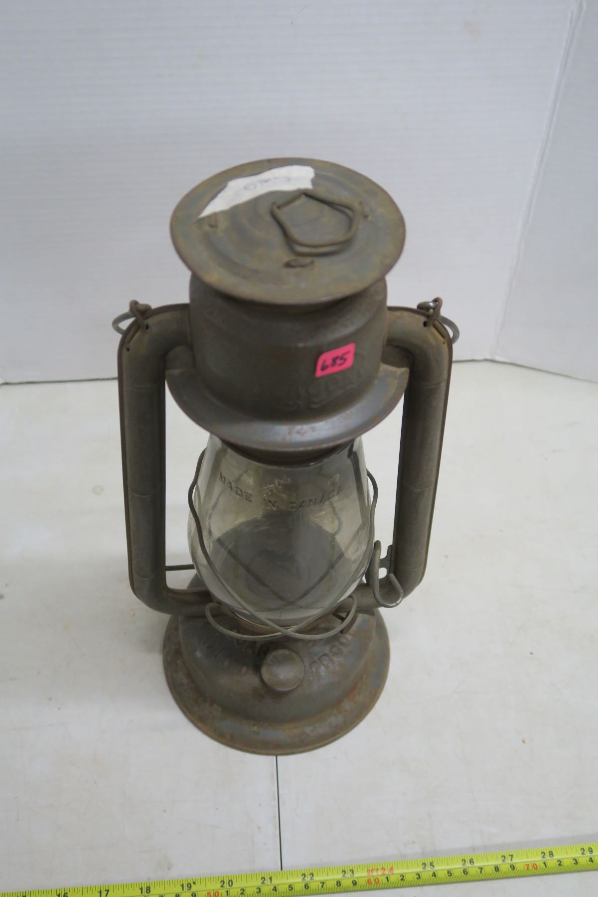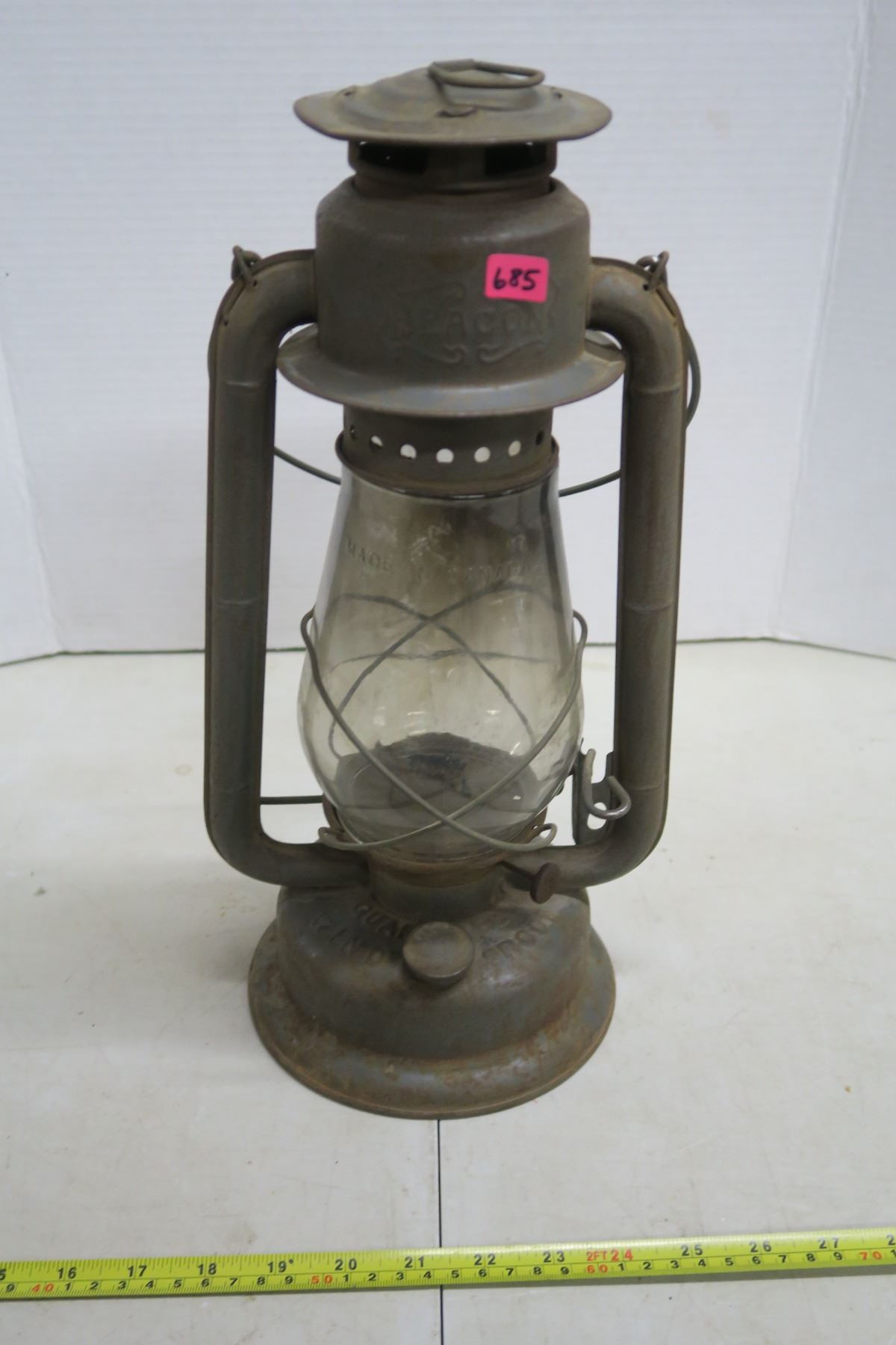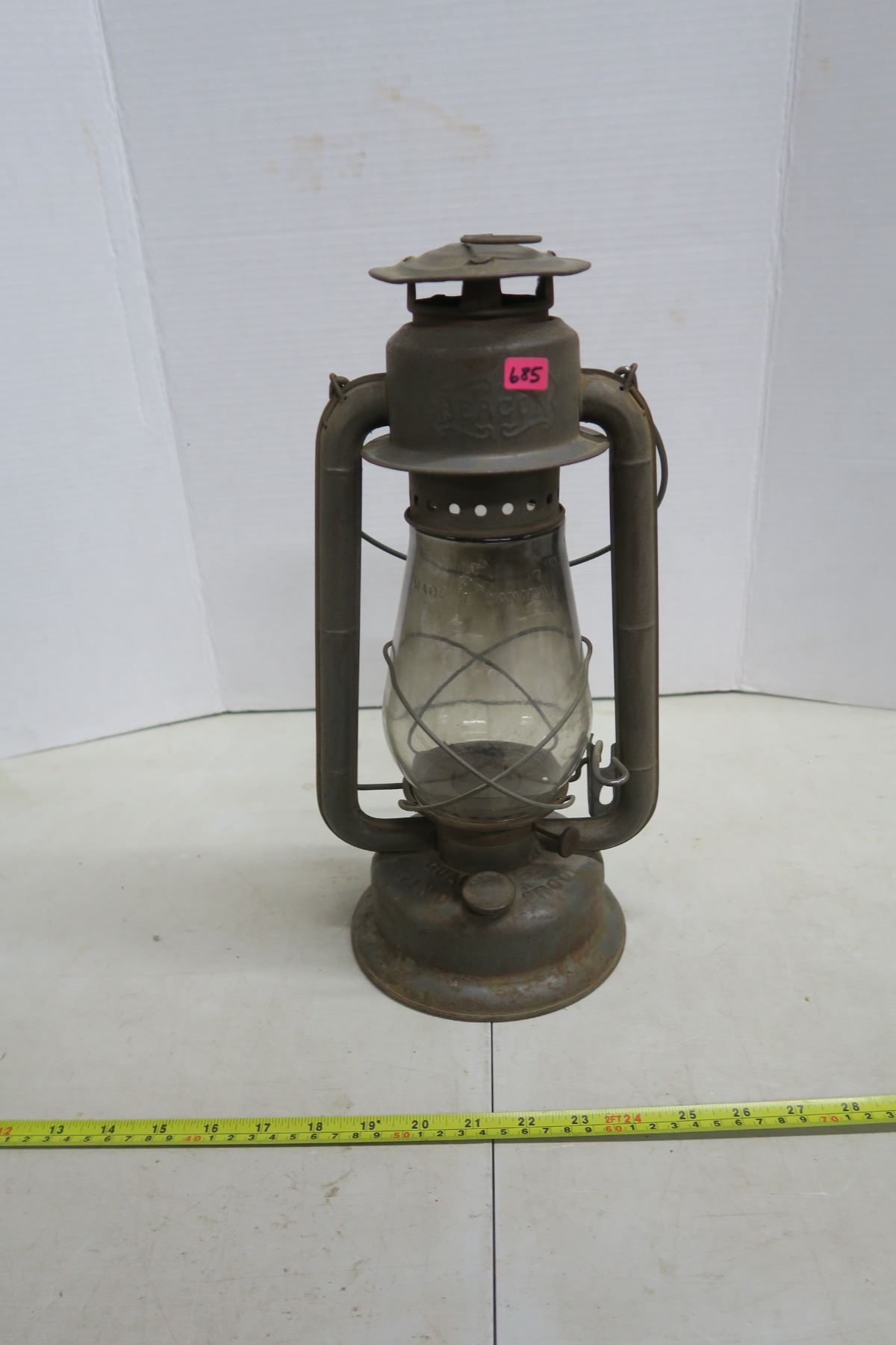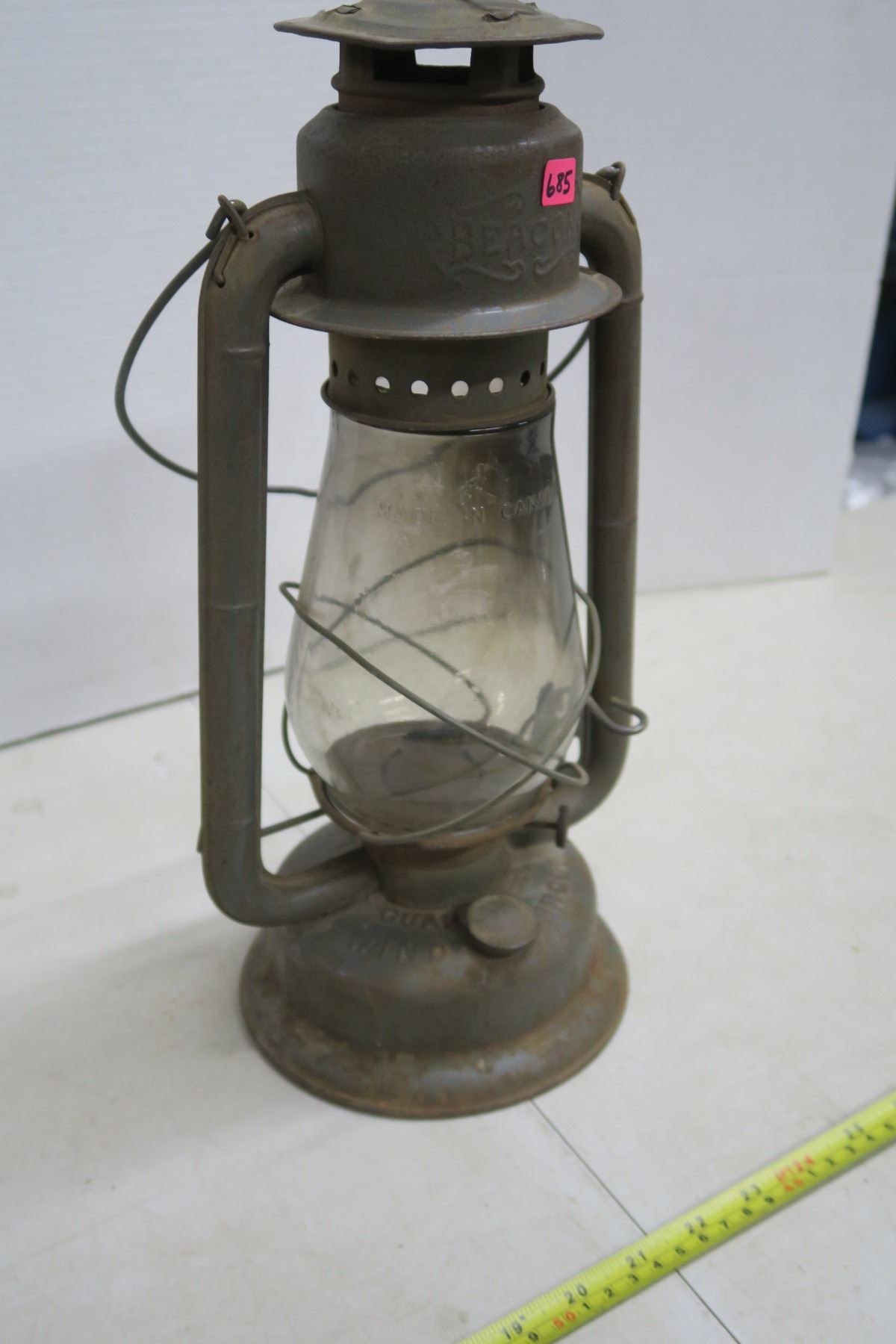 15" tall, works fine, nice patina aged look